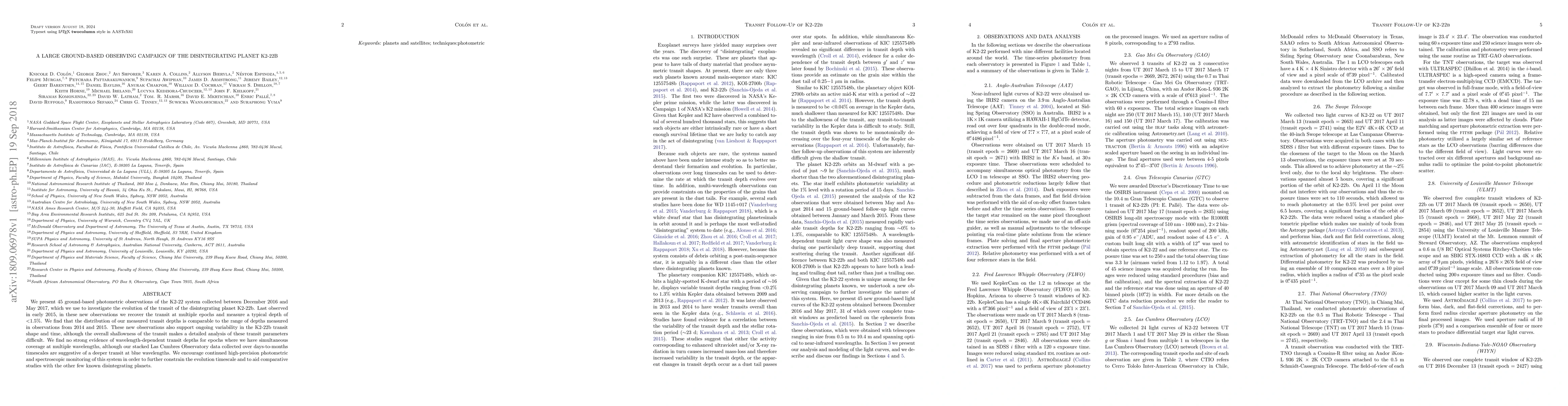 We present 45 ground-based photometric observations of the K2-22 system collected between December 2016 and May 2017, which we use to investigate the evolution of the transit of the disintegrating planet K2-22b. Last observed in early 2015, in these new observations we recover the transit at multiple epochs and measure a typical depth of <1.5%. We find that the distribution of our measured transit depths is comparable to the range of depths measured in observations from 2014 and 2015. These new observations also support ongoing variability in the K2-22b transit shape and time, although the overall shallowness of the transit makes a detailed analysis of these transit parameters difficult. We find no strong evidence of wavelength-dependent transit depths for epochs where we have simultaneous coverage at multiple wavelengths, although our stacked Las Cumbres Observatory data collected over days-to-months timescales are suggestive of a deeper transit at blue wavelengths. We encourage continued high-precision photometric and spectroscopic monitoring of this system in order to further constrain the evolution timescale and to aid comparative studies with the other few known disintegrating planets.