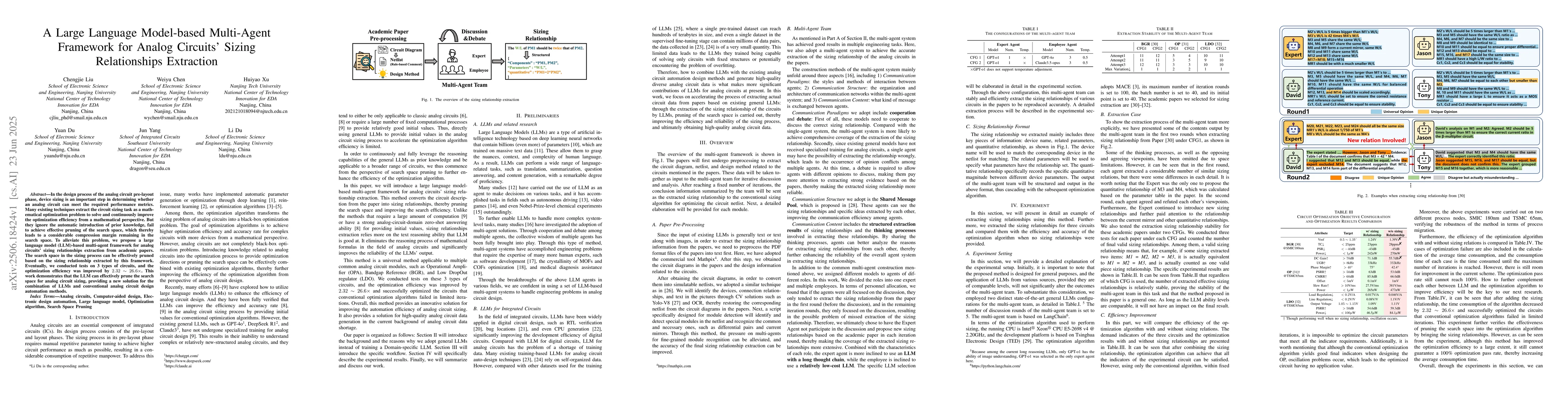 This research introduces a novel framework using large language models (LLMs) to extract sizing relationships for analog circuits, significantly improving optimization efficiency by 2.32 to 26.6 times. The method effectively prunes the search space, offering a new approach to integrate LLMs with traditional analog circuit design automation.