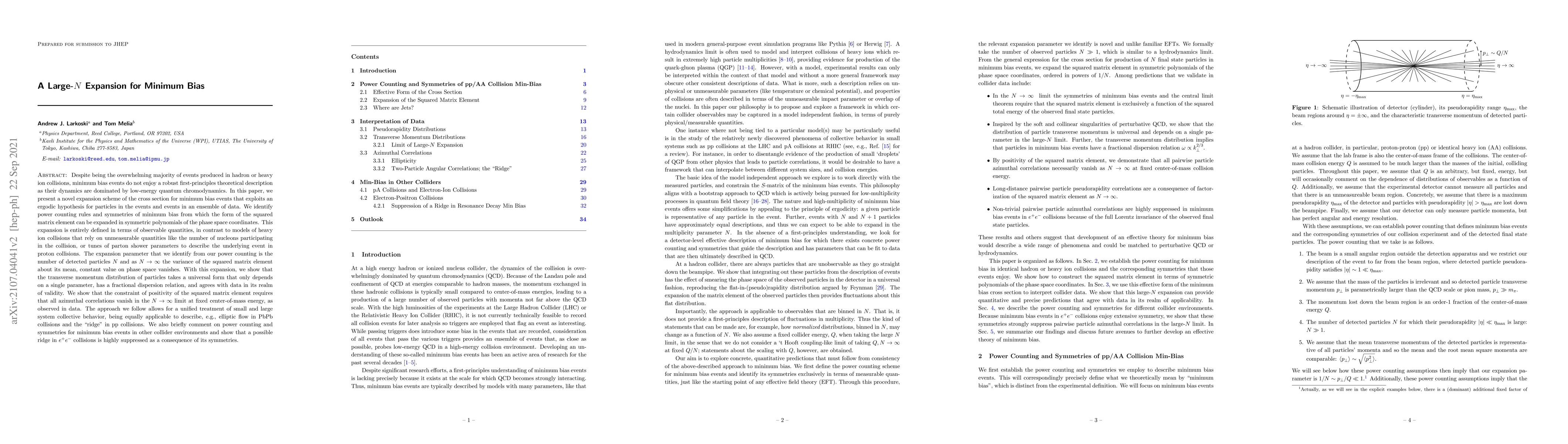 Despite being the overwhelming majority of events produced in hadron or heavy ion collisions, minimum bias events do not enjoy a robust first-principles theoretical description as their dynamics are dominated by low-energy quantum chromodynamics. In this paper, we present a novel expansion scheme of the cross section for minimum bias events that exploits an ergodic hypothesis for particles in the events and events in an ensemble of data. We identify power counting rules and symmetries of minimum bias from which the form of the squared matrix element can be expanded in symmetric polynomials of the phase space coordinates. This expansion is entirely defined in terms of observable quantities, in contrast to models of heavy ion collisions that rely on unmeasurable quantities like the number of nucleons participating in the collision, or tunes of parton shower parameters to describe the underlying event in proton collisions. The expansion parameter that we identify from our power counting is the number of detected particles $N$ and as $N\to\infty$ the variance of the squared matrix element about its mean, constant value on phase space vanishes. With this expansion, we show that the transverse momentum distribution of particles takes a universal form that only depends on a single parameter, has a fractional dispersion relation, and agrees with data in its realm of validity. We show that the constraint of positivity of the squared matrix element requires that all azimuthal correlations vanish in the $N\to\infty$ limit at fixed center-of-mass energy, as observed in data. The approach we follow allows for a unified treatment of small and large system collective behavior, being equally applicable to describe, e.g., elliptic flow in PbPb collisions and the "ridge" in pp collisions.