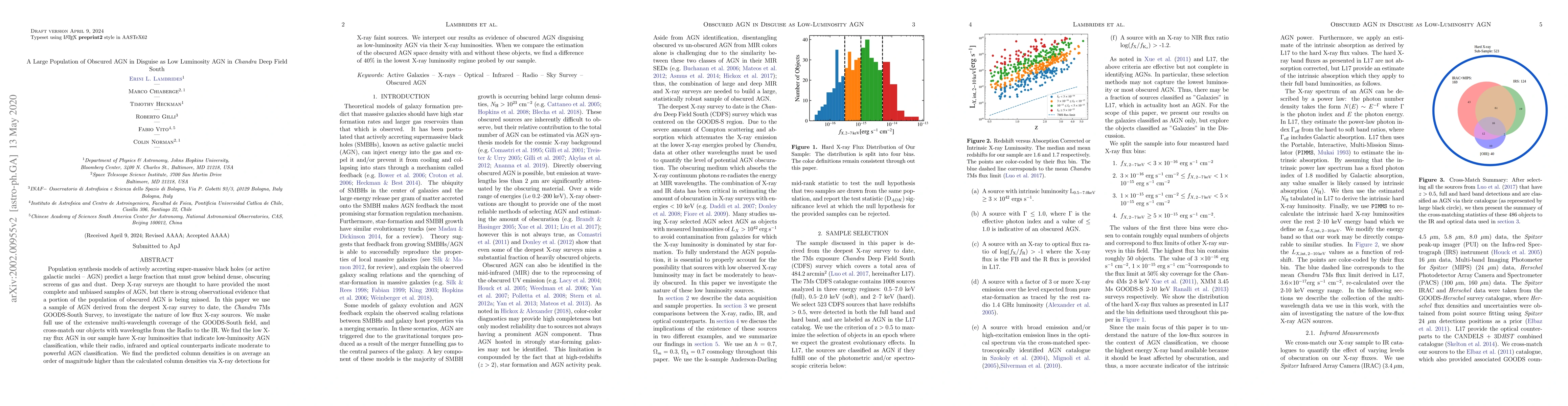 Population synthesis models of actively accreting super-massive black holes (or active galactic nuclei -- AGN) predict a large fraction that must grow behind dense, obscuring screens of gas and dust. Deep X-ray surveys are thought to have provided the most complete and unbiased samples of AGN, but there is strong observational evidence that a portion of the population of obscured AGN is being missed. In this paper we use a sample of AGN derived from the deepest X-ray survey to date, the Chandra 7Ms GOODS-South Survey, to investigate the nature of low flux X-ray sources. We make full use of the extensive multi-wavelength coverage of the GOODS-South field, and cross-match our objects with wavelengths from the Radio to the IR. We find the low X-ray flux AGN in our sample have X-ray luminosities that indicate low-luminosity AGN classification, while their radio, infrared and optical counterparts indicate moderate to powerful AGN classification. We find the predicted column densities is on average an order of magnitude higher than the calculated column densities via X-ray detections for X-ray faint sources. We interpret our results as evidence of obscured AGN disguising as low-luminosity AGN via their X-ray luminosities. When we compare the estimation of the obscured AGN space density with and without these objects, we find a difference of 40% in the lowest X-ray luminosity regime probed by our sample.