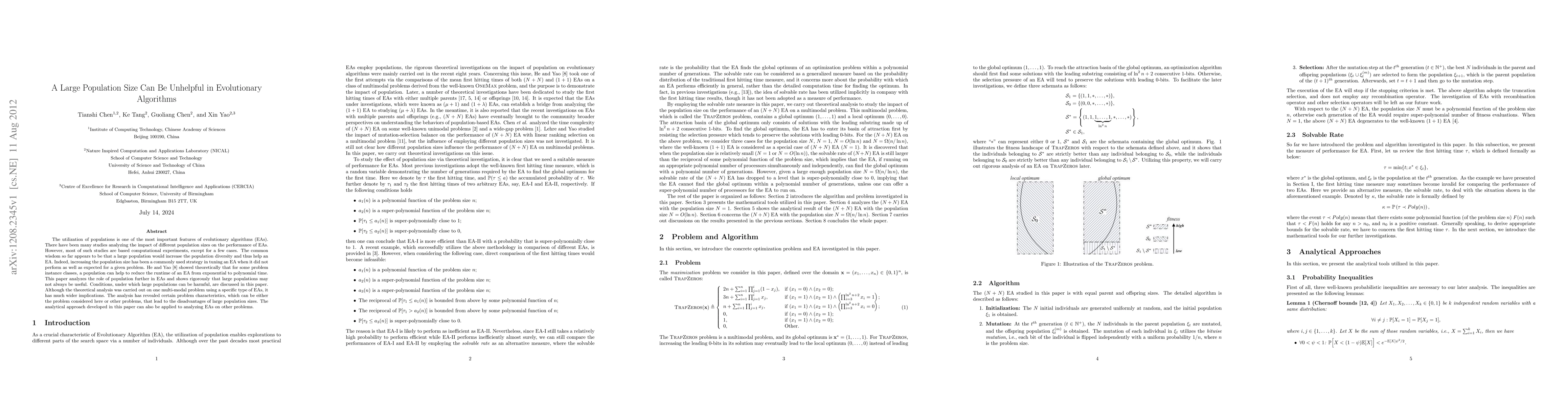 A large population size can actually hinder the performance of evolutionary algorithms, particularly in multi-modal problems, due to increased computational complexity and decreased convergence rates. This study provides a theoretical analysis revealing conditions under which large populations are harmful, offering insights for optimizing EA parameters.