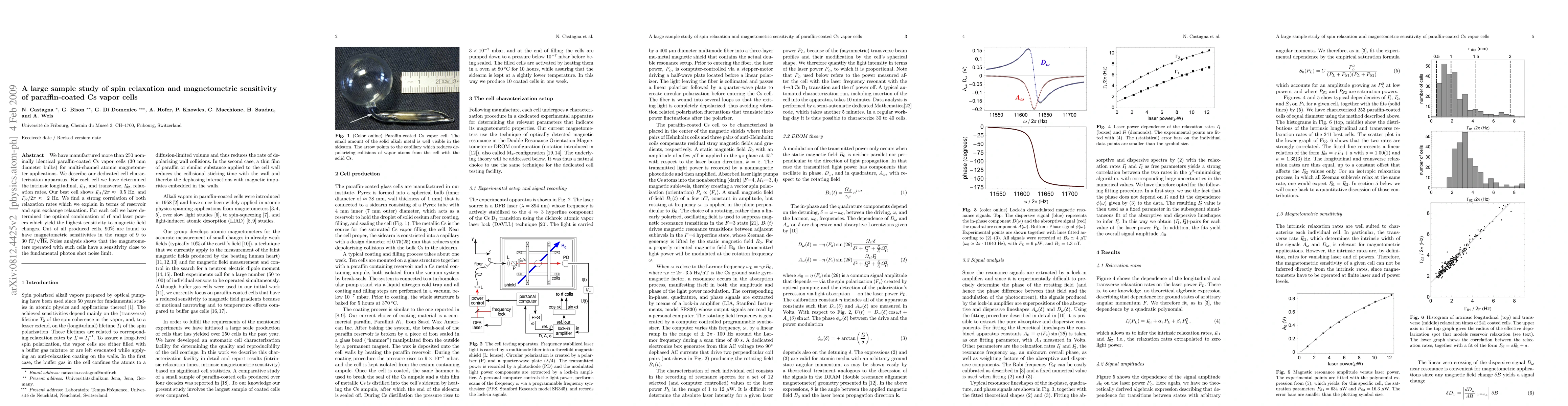 This study characterizes over 250 paraffin-coated Cs vapor cells for atomic magnetometer applications, revealing intrinsic spin relaxation rates and optimal power settings for maximum magnetic field sensitivity, with 90% of cells achieving sensitivities between 9 to 30 fT/√Hz.