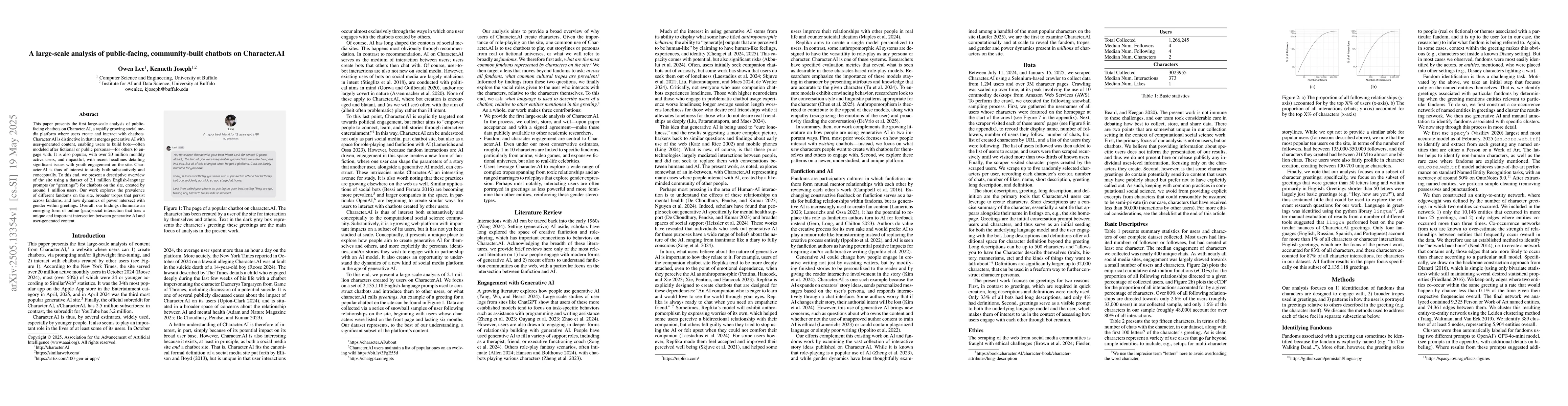 A study analyzes 2.1 million chatbot prompts on Character.AI, revealing the prevalence of fandoms and power dynamics in online interactions that merge AI and user-generated content.