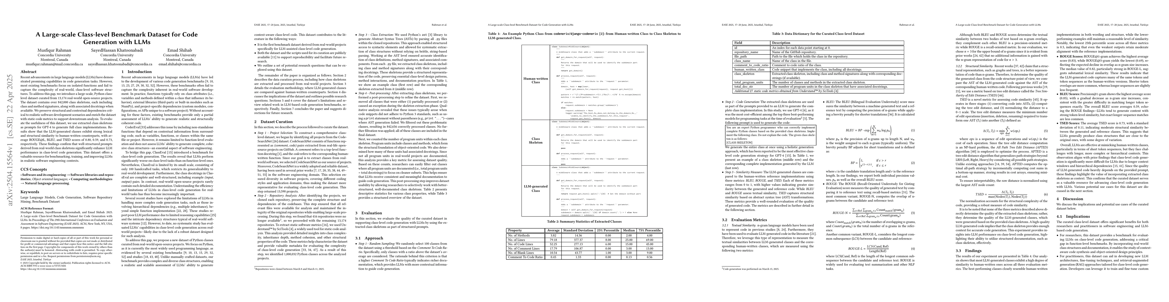 This work introduces the first large-scale class-level dataset for code generation, focusing on real-world software structures and enhancing LLM performance through well-structured prompts.