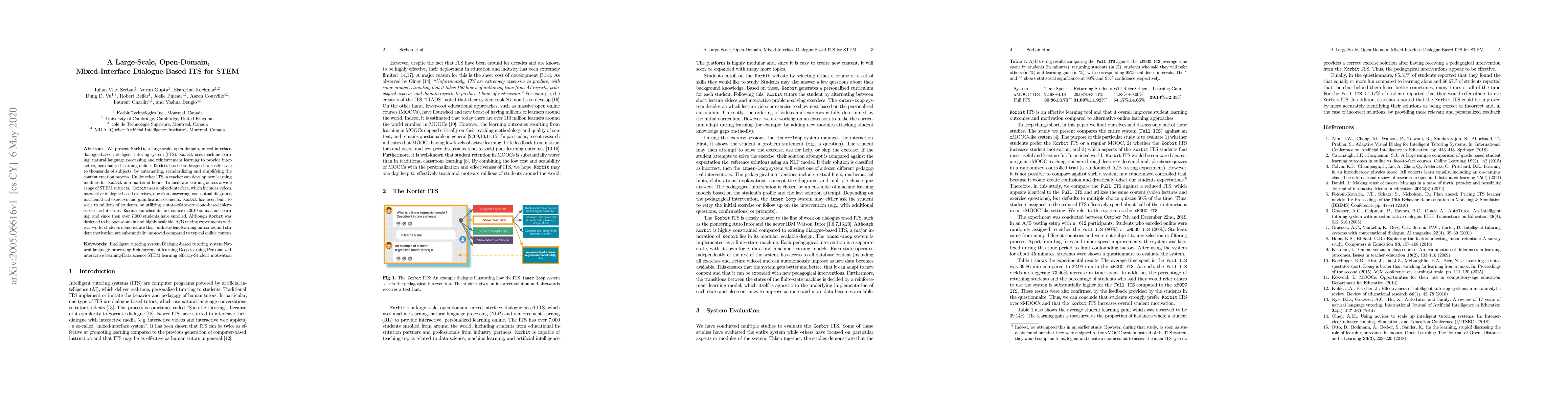 We present Korbit, a large-scale, open-domain, mixed-interface, dialogue-based intelligent tutoring system (ITS). Korbit uses machine learning, natural language processing and reinforcement learning to provide interactive, personalized learning online. Korbit has been designed to easily scale to thousands of subjects, by automating, standardizing and simplifying the content creation process. Unlike other ITS, a teacher can develop new learning modules for Korbit in a matter of hours. To facilitate learning across a widerange of STEM subjects, Korbit uses a mixed-interface, which includes videos, interactive dialogue-based exercises, question-answering, conceptual diagrams, mathematical exercises and gamification elements. Korbit has been built to scale to millions of students, by utilizing a state-of-the-art cloud-based micro-service architecture. Korbit launched its first course in 2019 on machine learning, and since then over 7,000 students have enrolled. Although Korbit was designed to be open-domain and highly scalable, A/B testing experiments with real-world students demonstrate that both student learning outcomes and student motivation are substantially improved compared to typical online courses.