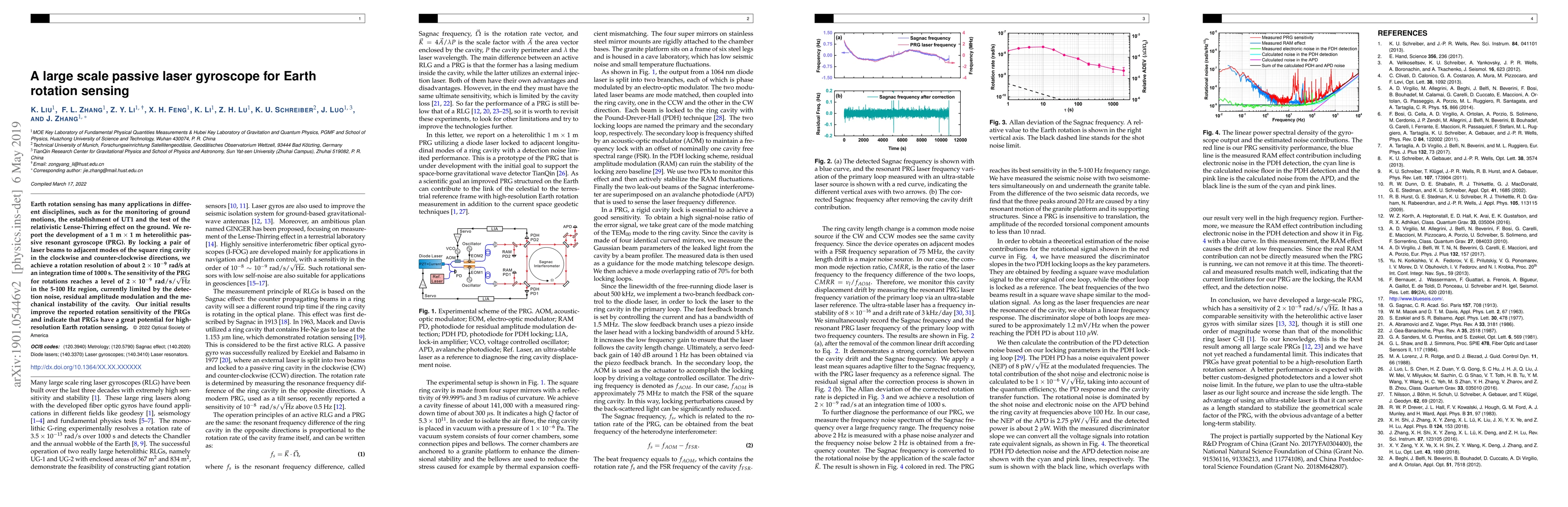 This paper reports the development of a large-scale passive resonant gyroscope (PRG) for Earth rotation sensing, achieving a rotation resolution of 2E-9 rad/s over 1000 seconds. The PRG's sensitivity reaches 2E-9 rad/s/rtHz in the 5-100 Hz range, showing potential for high-resolution monitoring of ground motions and testing relativistic effects.