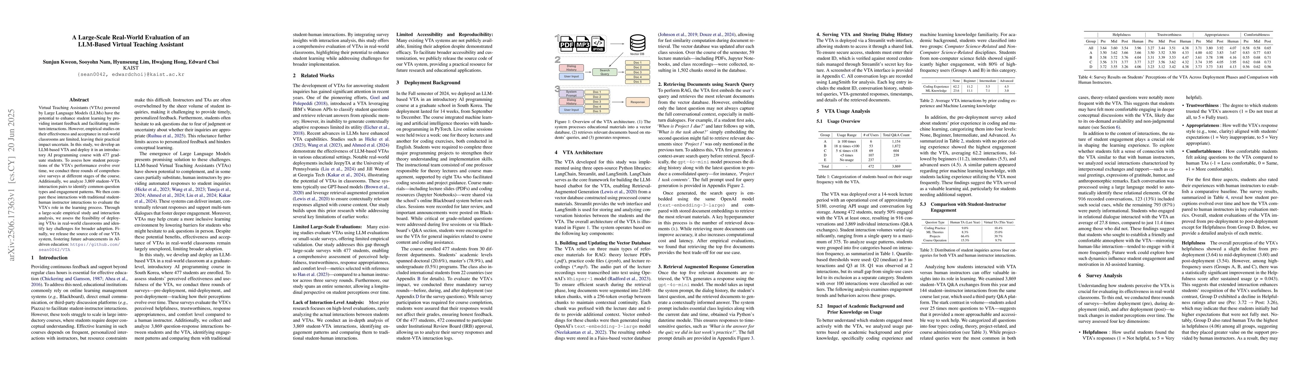 This study deploys an LLM-based Virtual Teaching Assistant in an AI programming course with 477 graduate students. Through surveys and analysis of 3,869 student-VTA interaction pairs, the research evaluates the VTA's performance, student acceptance, and compares it to human instructor interactions, identifying key challenges for broader adoption in education.