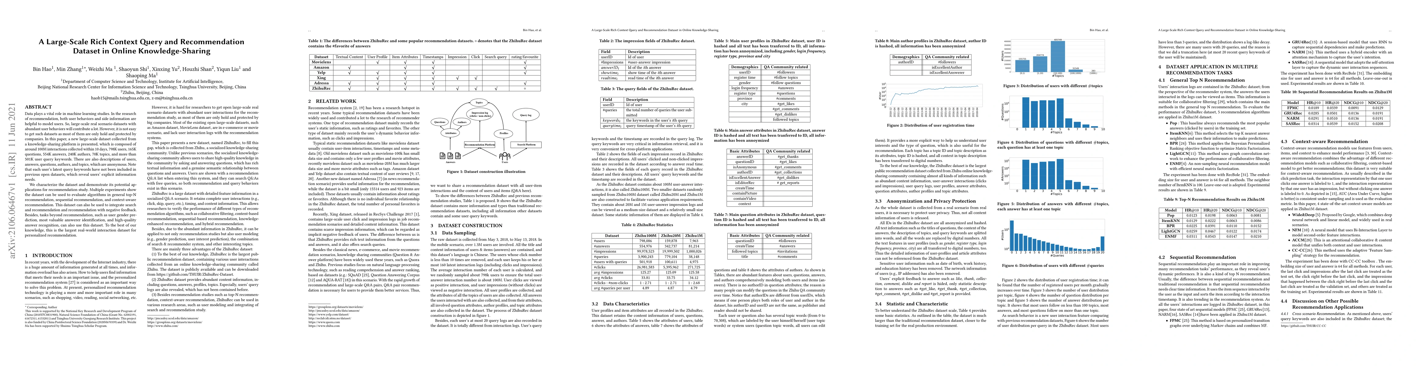 Data plays a vital role in machine learning studies. In the research of recommendation, both user behaviors and side information are helpful to model users. So, large-scale real scenario datasets with abundant user behaviors will contribute a lot. However, it is not easy to get such datasets as most of them are only hold and protected by companies. In this paper, a new large-scale dataset collected from a knowledge-sharing platform is presented, which is composed of around 100M interactions collected within 10 days, 798K users, 165K questions, 554K answers, 240K authors, 70K topics, and more than 501K user query keywords. There are also descriptions of users, answers, questions, authors, and topics, which are anonymous. Note that each user's latest query keywords have not been included in previous open datasets, which reveal users' explicit information needs. We characterize the dataset and demonstrate its potential applications for recommendation study. Multiple experiments show the dataset can be used to evaluate algorithms in general top-N recommendation, sequential recommendation, and context-aware recommendation. This dataset can also be used to integrate search and recommendation and recommendation with negative feedback. Besides, tasks beyond recommendation, such as user gender prediction, most valuable answerer identification, and high-quality answer recognition, can also use this dataset. To the best of our knowledge, this is the largest real-world interaction dataset for personalized recommendation.