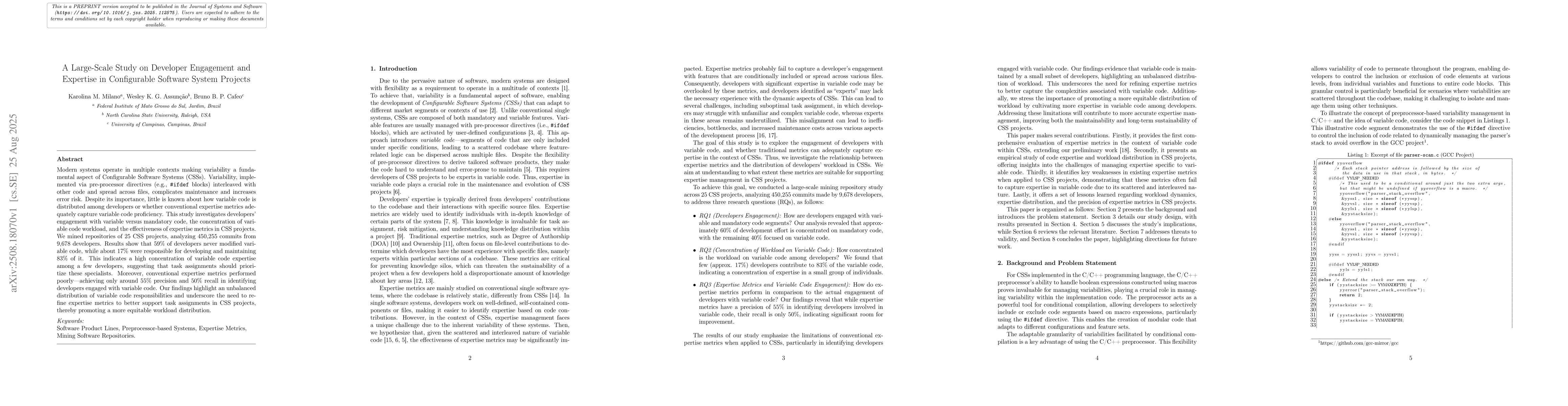 Modern systems operate in multiple contexts making variability a fundamental aspect of Configurable Software Systems (CSSs). Variability, implemented via pre-processor directives (e.g., #ifdef blocks) interleaved with other code and spread across files, complicates maintenance and increases error risk. Despite its importance, little is known about how variable code is distributed among developers or whether conventional expertise metrics adequately capture variable code proficiency. This study investigates developers' engagement with variable versus mandatory code, the concentration of variable code workload, and the effectiveness of expertise metrics in CSS projects. We mined repositories of 25 CSS projects, analyzing 450,255 commits from 9,678 developers. Results show that 59% of developers never modified variable code, while about 17% were responsible for developing and maintaining 83% of it. This indicates a high concentration of variable code expertise among a few developers, suggesting that task assignments should prioritize these specialists. Moreover, conventional expertise metrics performed poorly--achieving only around 55% precision and 50% recall in identifying developers engaged with variable code. Our findings highlight an unbalanced distribution of variable code responsibilities and underscore the need to refine expertise metrics to better support task assignments in CSS projects, thereby promoting a more equitable workload distribution.