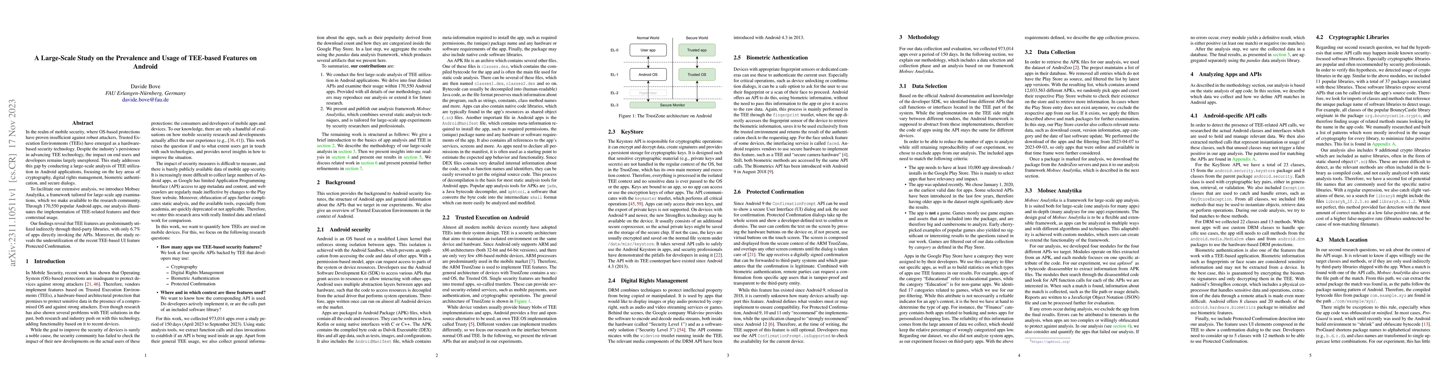 This study investigates the prevalence and usage of TEE-based features in Android applications, revealing that only 6.7% of apps directly use TEE APIs, while most leverage TEE indirectly via third-party libraries. The research highlights the underutilization of the TEE-based UI feature Protected Confirmation.