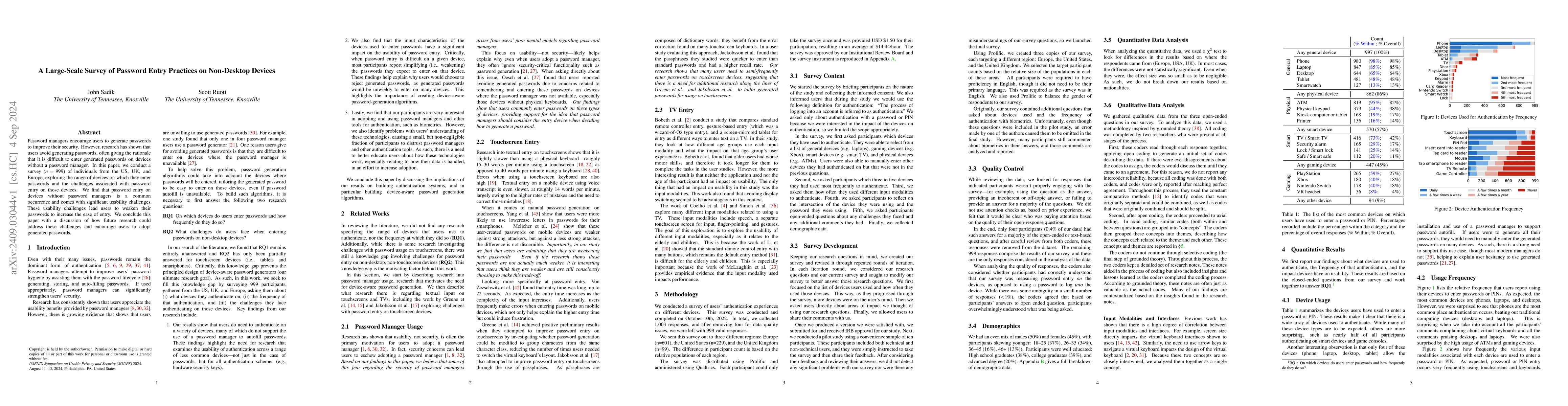 This survey of 999 individuals across the US, UK, and Europe reveals that password entry on non-desktop devices without password managers is prevalent and fraught with usability challenges, leading users to opt for weaker passwords for ease of use. Future research should aim to address these challenges to promote the adoption of secure generated passwords.