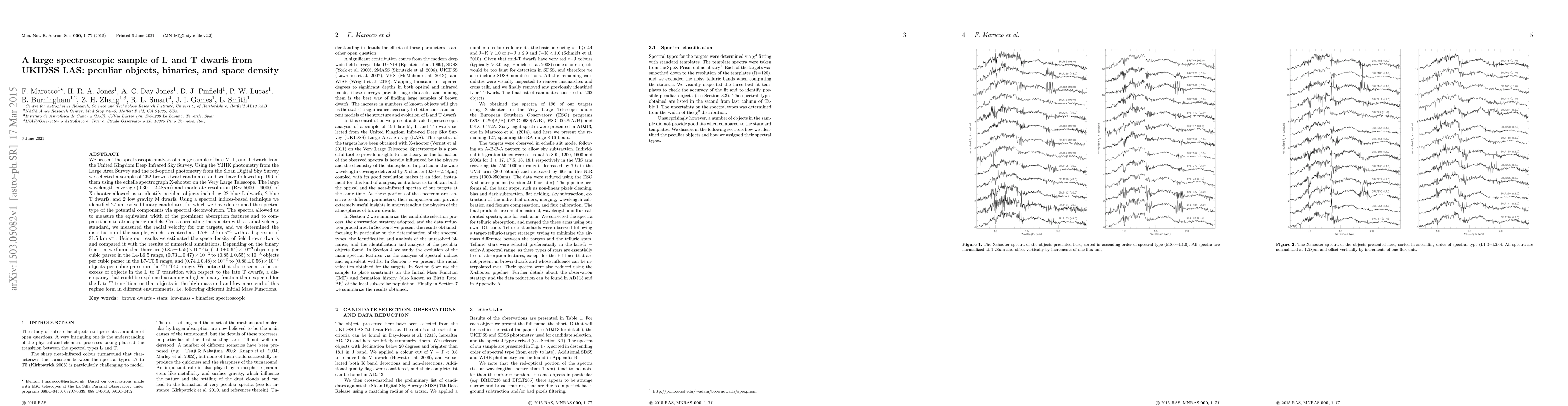 We present the spectroscopic analysis of a large sample of late-M, L, and T dwarfs from UKIDSS. Using the YJHK photometry from ULAS and the red-optical photometry from SDSS we selected a sample of 262 brown dwarf candidates and we followed-up 196 of them using X-shooter on the VLT. The large wavelength coverage (0.30-2.48 $\mu$m) and moderate resolution (R~5000-9000) of X-shooter allowed us to identify peculiar objects including 22 blue L dwarfs, 2 blue T dwarfs, and 2 low gravity M dwarfs. Using a spectral indices-based technique we identified 27 unresolved binary candidates, for which we determined the spectral type of the potential components via spectral deconvolution. The spectra allowed us to measure the equivalent width of the prominent absorption features and to compare them to atmospheric models. Cross-correlating the spectra with a radial velocity standard, we measured the radial velocity for our targets, and we determined the distribution of the sample, which is centred at -1.7$\pm$1.2 km s$^{-1}$ with a dispersion of 31.5 km s$^{-1}$. Using our results we estimated the space density of field brown dwarfs and compared it with the results of numerical simulations. Depending on the binary fraction, we found that there are (0.85$\pm$0.55) x 10$^{-3}$ to (1.00$\pm$0.64) x 10$^{-3}$ objects per cubic parsec in the L4-L6.5 range, (0.73$\pm$0.47) x 10$^{-3}$ to (0.85$\pm$0.55) x 10$^{-3}$ objects per cubic parsec in the L7-T0.5 range, and (0.74$\pm$0.48) x 10$^{-3}$ to (0.88$\pm$0.56) x 10$^{-3}$ objects per cubic parsec in the T1-T4.5 range. There seem to be an excess of objects in the L/T transition with respect to the late T dwarfs, a discrepancy that could be explained assuming a higher binary fraction than expected for the L/T transition, or that objects in the high-mass end and low-mass end of this regime form in different environments, i.e. following different IMFs.