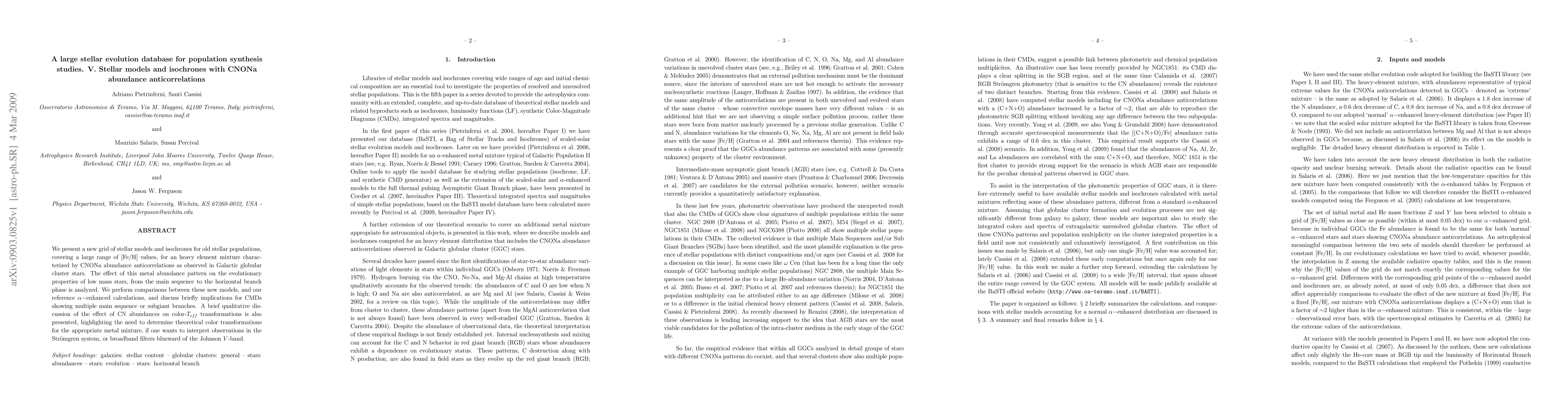 This paper introduces a new grid of stellar models and isochrones featuring CNONa abundance anticorrelations, relevant for old stellar populations. It analyzes the impact of these specific metal abundance patterns on the evolution of low-mass stars and discusses implications for color-magnitude diagrams and color transformations.