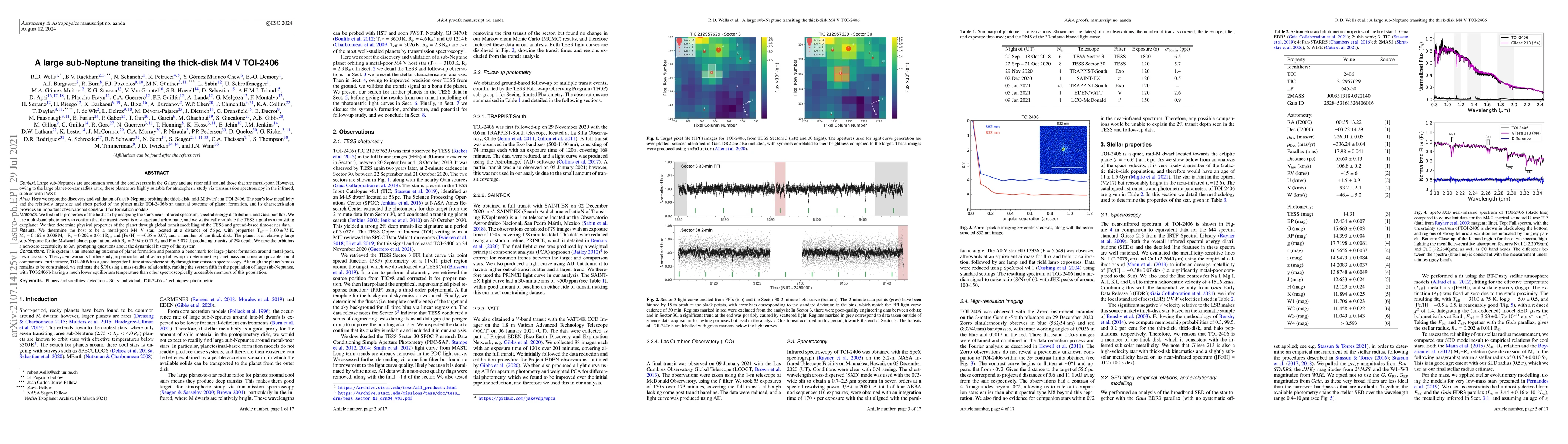 Scientists have discovered a large sub-Neptune planet orbiting a metal-poor M-dwarf star called TOI-2406, which is located in the thick disk of the Milky Way galaxy.