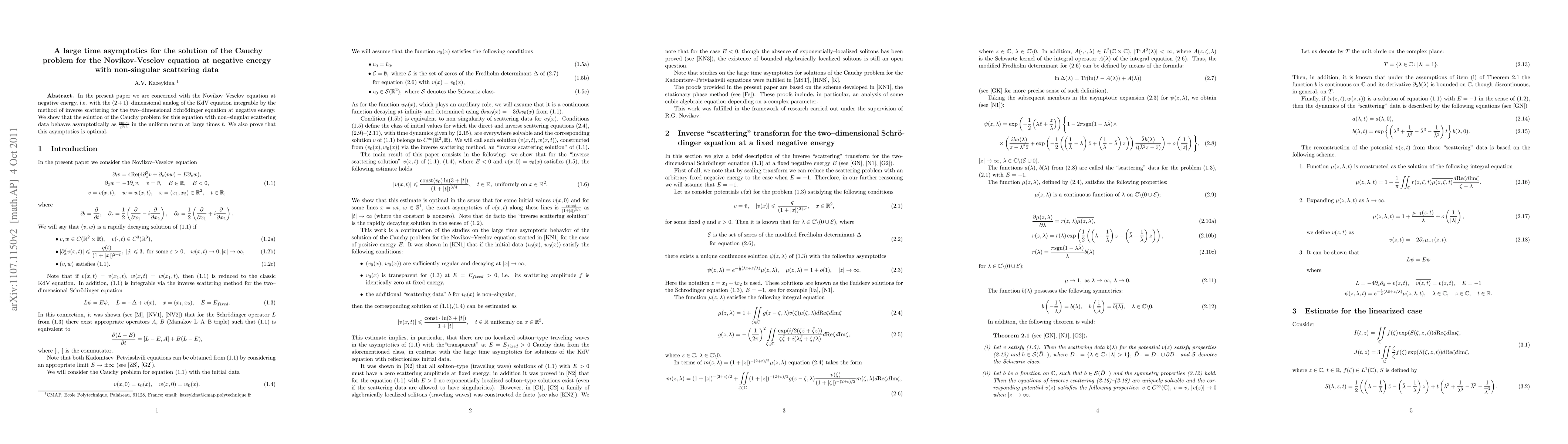 The Novikov-Veselov equation at negative energy exhibits asymptotic behavior of $ rac{1}{t^{3/4}} $ in the uniform norm for large times with non-singular scattering data.