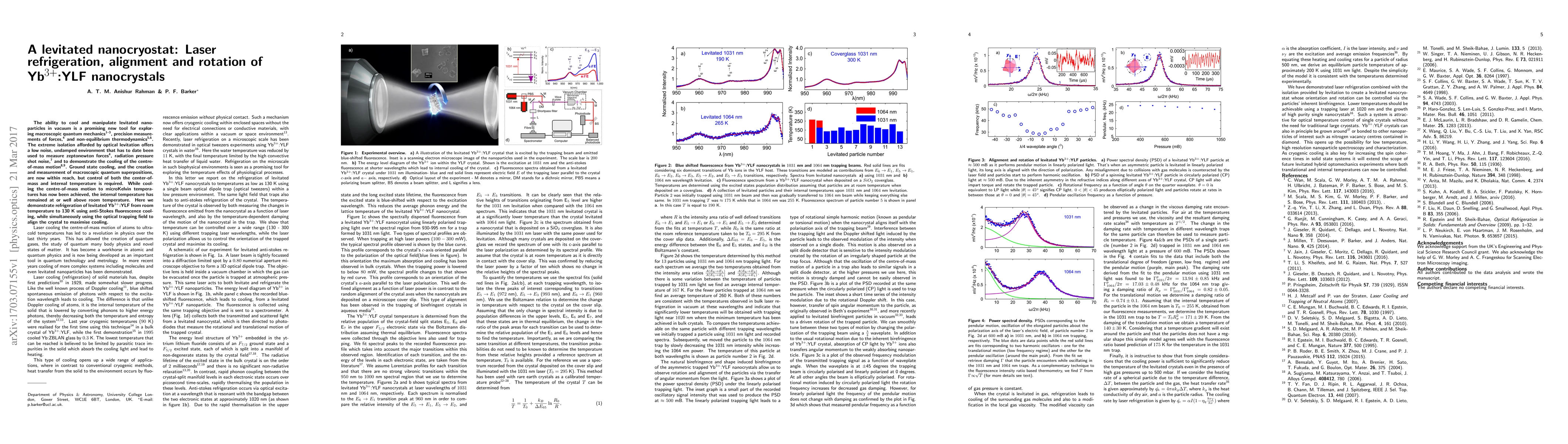 The ability to cool and manipulate levitated nano-particles in vacuum is a promising new tool for exploring macroscopic quantum mechanics\cite{WanPRL2016,Scala2013,Zhang2013}, precision measurements of forces, \cite{GambhirPRA2016} and non-equilibrium thermodynamics \cite{GieselerNatNano2014,MillenNat2014}. The extreme isolation afforded by optical levitation offers a low noise, undamped environment that has to date been used to measure zeptonewton forces \cite{GambhirPRA2016}, radiation pressure shot noise,\cite{Jain2016} and to demonstrate the cooling of the centre-of-mass motion \cite{LiNatPhys2011,Gieseler2012}. Ground state cooling, and the creation and measurement of macroscopic quantum superpositions, are now within reach, but control of both the center-of-mass and internal temperature is required. While cooling the centre-of-mass motion to microKelvin temperatures has now been achieved, the internal temperature has remained at or well above room temperature. Here we demonstrate refrigeration of levitated Yb$^{3+}$:YLF from room temperature to 130 K using anti-Stokes fluorescence cooling, while simultaneously using the optical trapping field to align the crystal to maximise cooling.