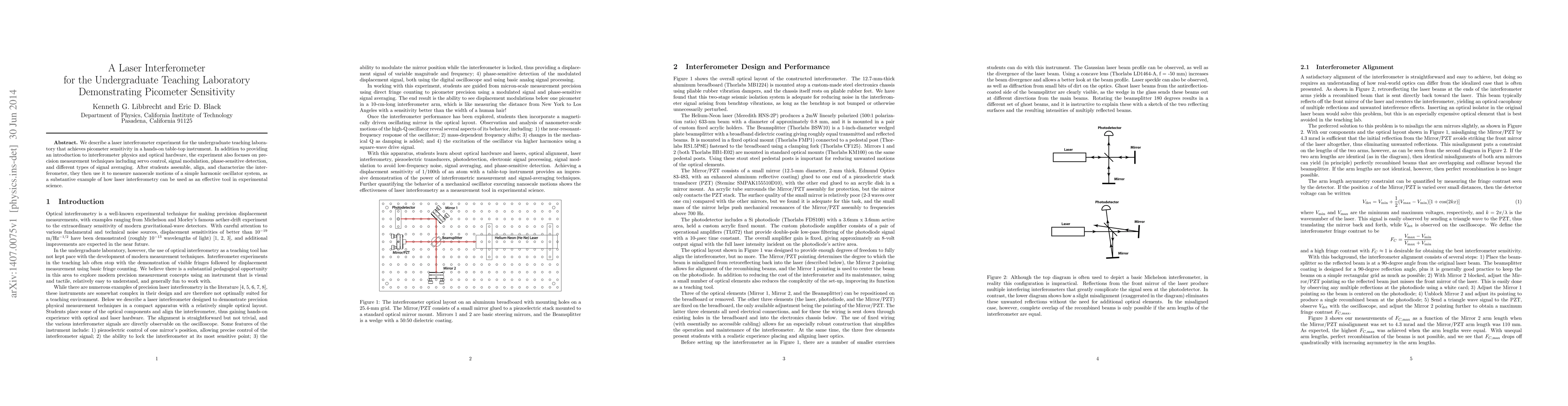 Researchers developed a laser interferometer experiment for undergraduate students to achieve picometer sensitivity in a hands-on table-top instrument. Students measured nanoscale motions of a simple harmonic oscillator system using the device.