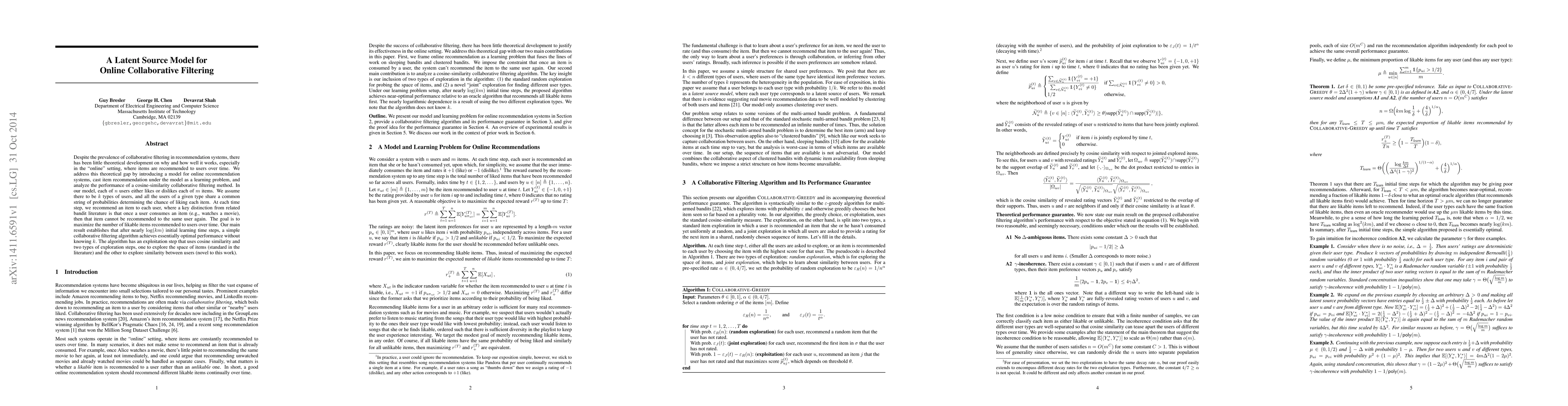 A new model for online collaborative filtering aims to improve recommendation systems' performance by incorporating user types and item similarity exploration. After nearly log(km) initial learning steps, the algorithm achieves essentially optimal performance without knowing the number of user types.