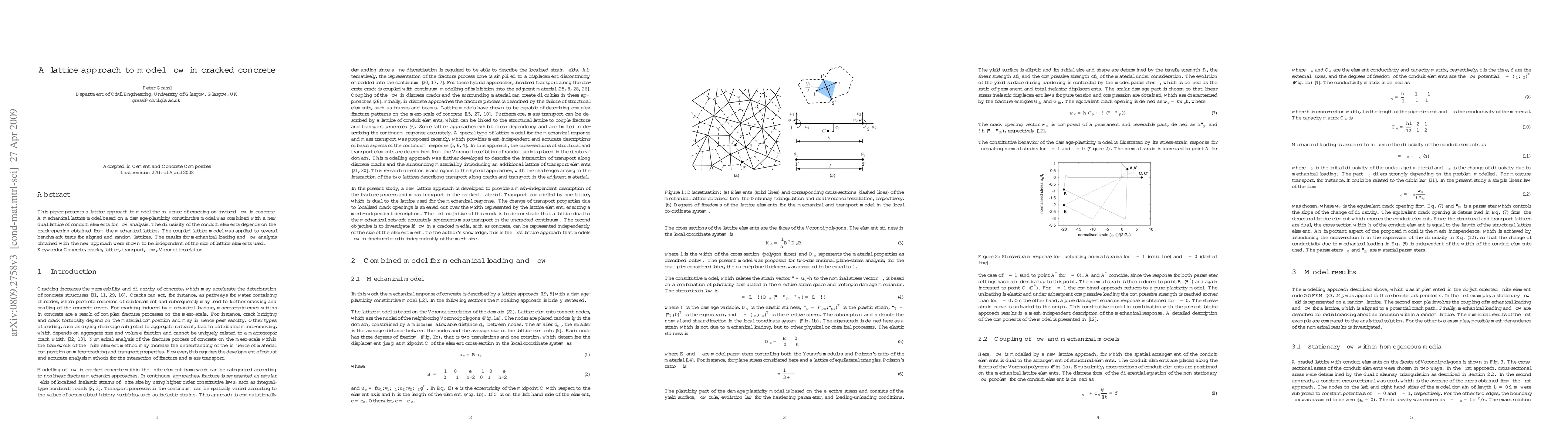 This paper introduces a lattice model combining mechanical and conduit elements to simulate flow in cracked concrete, demonstrating its effectiveness through benchmark tests and showing results' independence from lattice size.