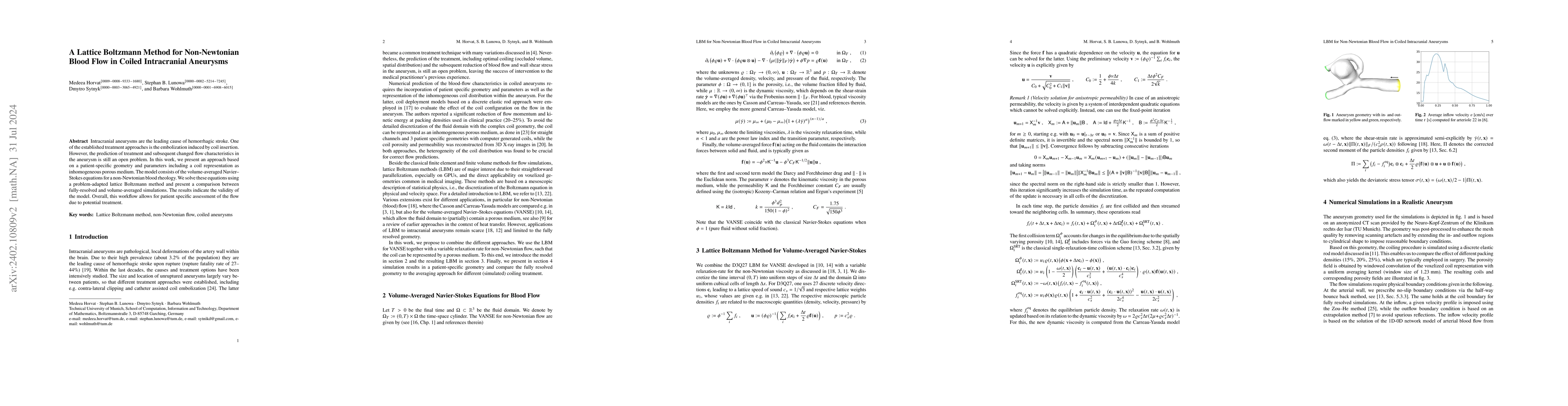 This study introduces a lattice Boltzmann method to simulate non-Newtonian blood flow in coiled intracranial aneurysms, incorporating patient-specific geometry and a coil representation as an inhomogeneous porous medium. The results validate the model, enabling patient-specific assessments of post-treatment flow changes.