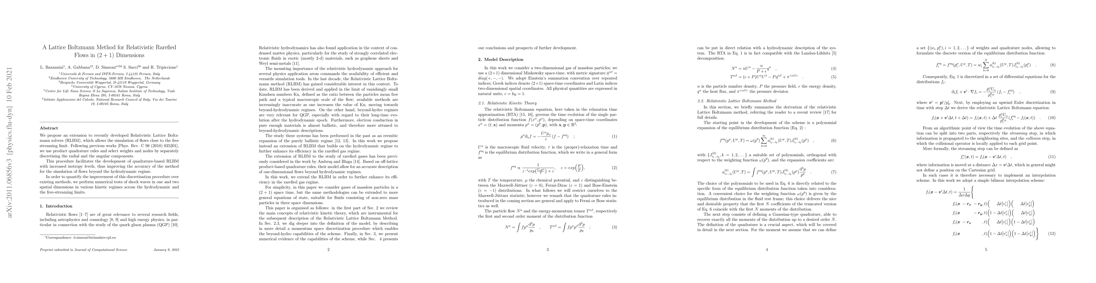 This paper extends Relativistic Lattice Boltzmann Methods (RLBM) for simulating relativistic rarefied flows in (2+1) dimensions, improving isotropy and accuracy through a new discretization approach. Numerical tests on shock waves demonstrate enhanced performance over existing methods across different kinetic regimes.