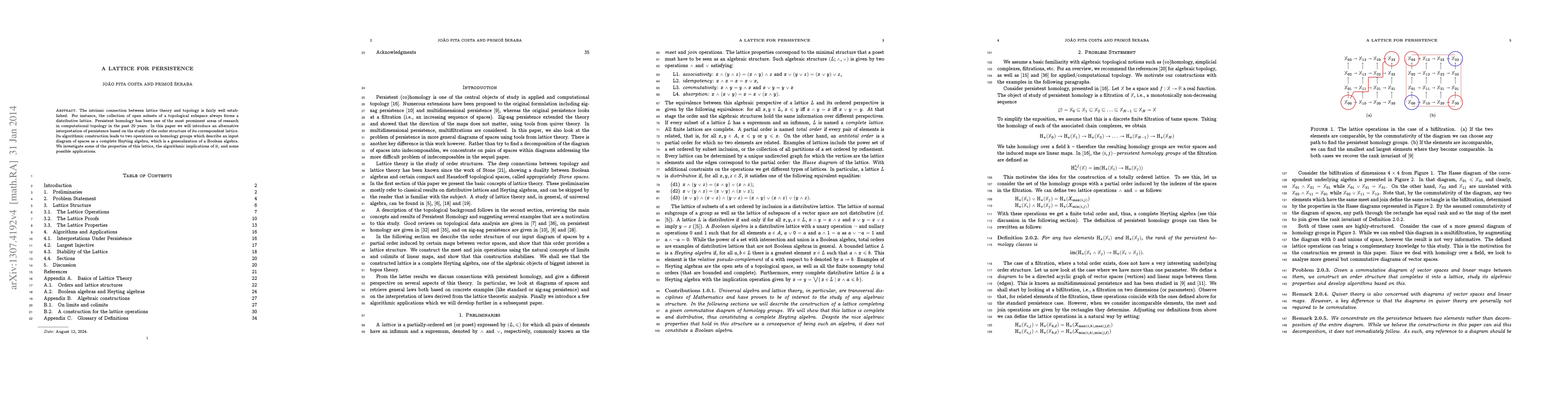 This paper introduces a novel lattice-based interpretation of persistent homology, constructing a complete Heyting algebra from a diagram of spaces. It explores the properties and algorithmic implications of this lattice structure, suggesting potential applications in computational topology.