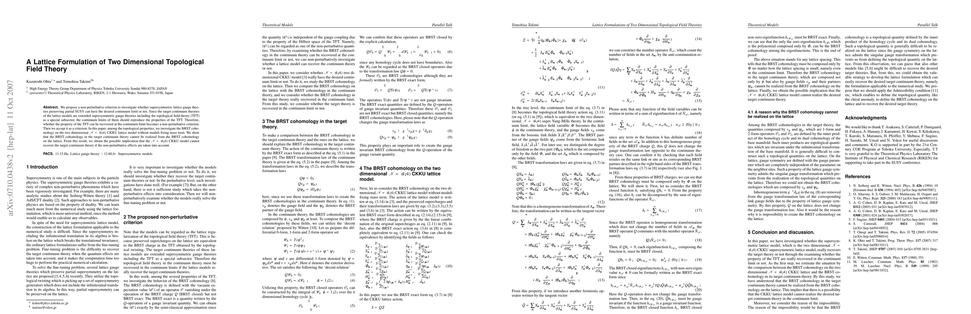 This paper proposes a non-perturbative criterion to assess whether supersymmetric lattice gauge theories can achieve a continuum limit that reproduces the properties of a topological field theory (TFT). It finds that the BRST cohomology of the ${\mathcal N}=(4,4)$ CKKU lattice model does not match that of the continuum theory, suggesting the ${\mathcal N}=(4,4)$ CKKU model may fail to recover the target continuum theory when non-perturbative effects are considered.