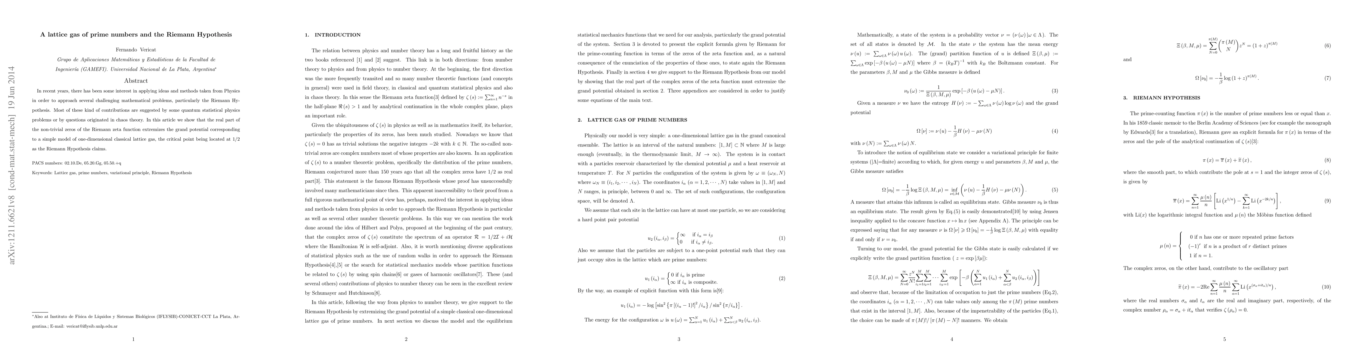 In recent years, there has been some interest in applying ideas and methods taken from Physics in order to approach several challenging mathematical problems, particularly the Riemann Hypothesis. Most of these kind of contributions are suggested by some quantum statistical physics problems or by questions originated in chaos theory. In this letter we show that the real part of the non-trivial zeros of the Riemann zeta function extremizes the grand potential corresponding to a simple model of one-dimensional classical lattice gas, the critical point being located at 1/2 as the Riemann Hypothesis claims.