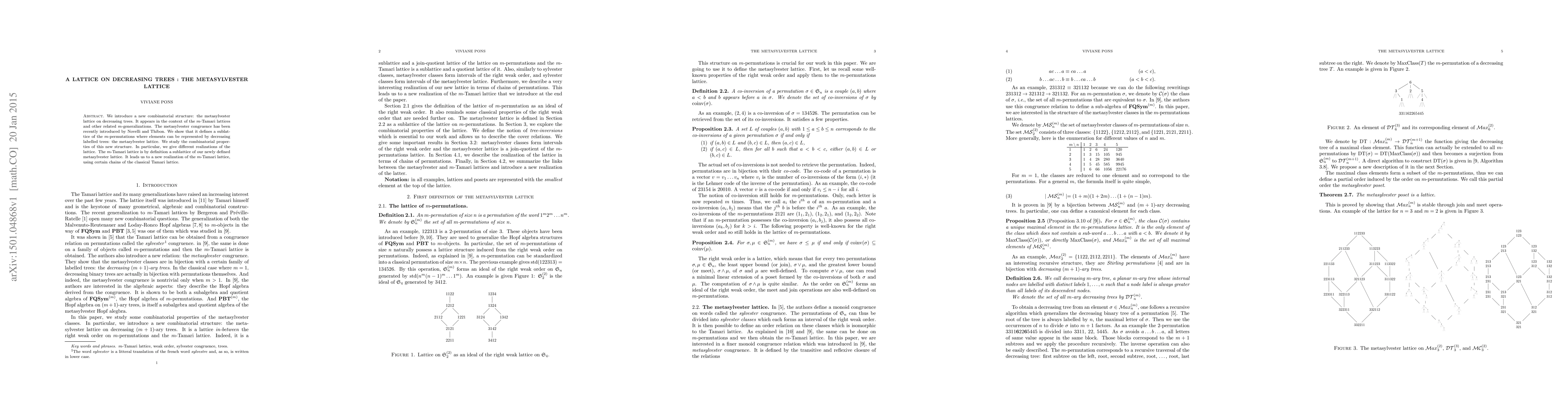 We introduce a new combinatorial structure: the metasylvester lattice on decreasing trees. It appears in the context of the $m$-Tamari lattices and other related $m$-generalizations. The metasylvester congruence has been recently introduced by Novelli and Thibon. We show that it defines a sublattice of the $m$-permutations where elements can be represented by decreasing labelled trees: the metasylvester lattice. We study the combinatorial properties of this new structure. In particular, we give different realizations of the lattice. The $m$-Tamari lattice is by definition a sublattice of our newly defined metasylvester lattice. It leads us to a new realization of the $m$-Tamari lattice, using certain chains of the classical Tamari lattice.