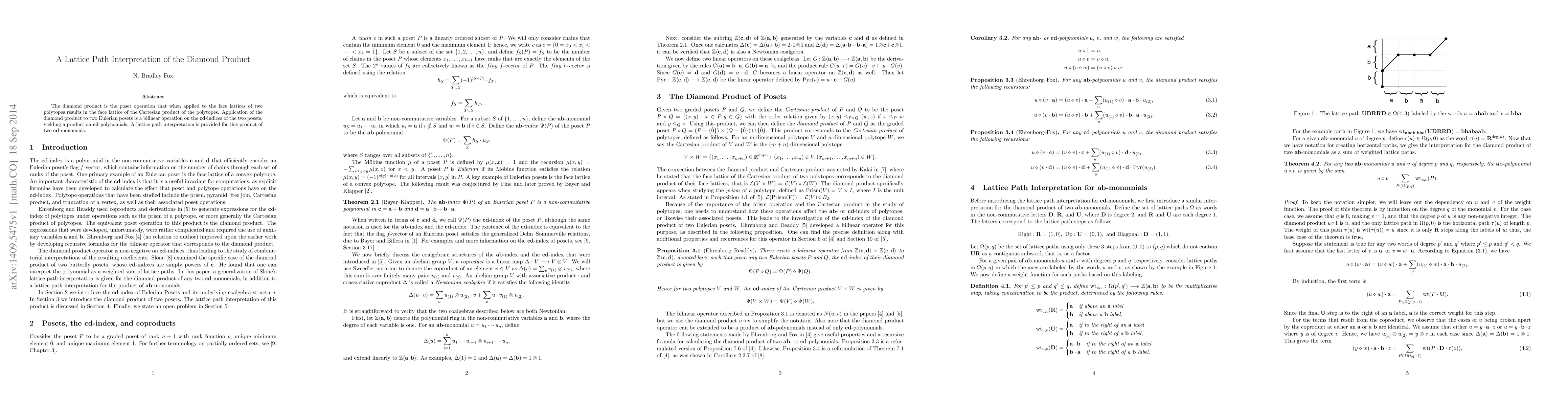 The diamond product is the poset operation that when applied to the face lattices of two polytopes results in the face lattice of the Cartesian product of the polytopes. Application of the diamond product to two Eulerian posets is a bilinear operation on the cd-indices of the two posets, yielding a product on cd-polynomials. A lattice path interpretation is provided for this product of two cd-monomials.