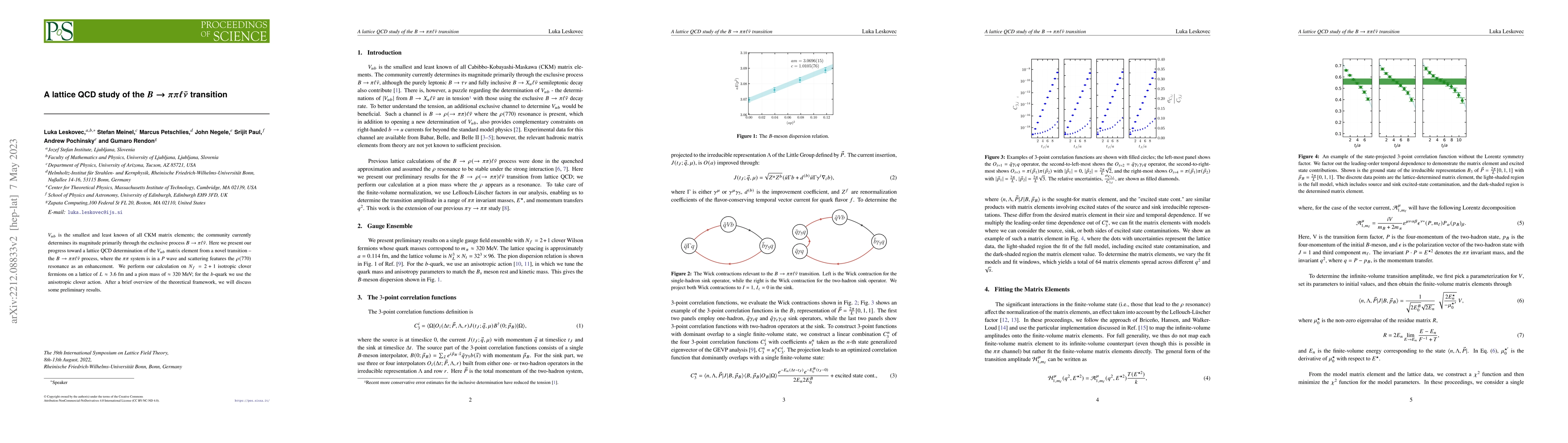 $V_{ub}$ is the smallest and least known of all CKM matrix elements; the community currently determines its magnitude primarily through the exclusive process $B\to\pi\ell\bar{\nu}$. Here we present our progress toward a lattice QCD determination of the $V_{ub}$ matrix element from a novel transition -- $B\to\pi\pi\ell\bar{\nu}$ process, where the $\pi\pi$ system is in a $P$ wave and scattering features the $\rho(770)$ resonance as an enhancement. We perform our calculation on $N_f=2+1$ isotropic clover fermions on a lattice of $L\approx 3.6$ fm and a pion mass of $\approx 320$ MeV; for the $b$-quark we use the anisotropic clover action. After a brief overview of the theoretical framework, we will discuss some preliminary results.