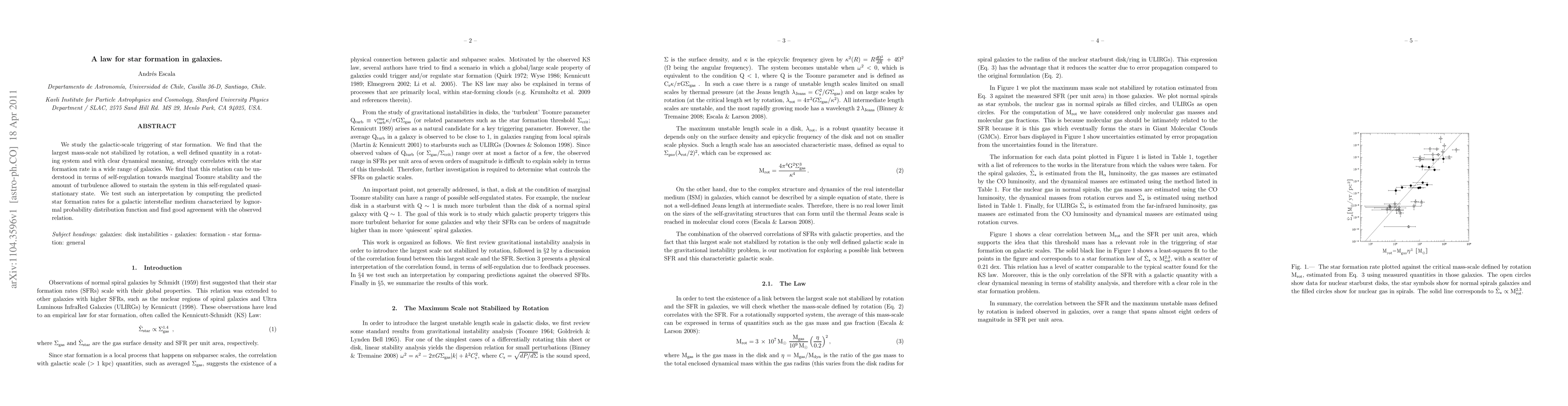 We study the galactic-scale triggering of star formation. We find that the largest mass-scale not stabilized by rotation, a well defined quantity in a rotating system and with clear dynamical meaning, strongly correlates with the star formation rate in a wide range of galaxies. We find that this relation can be understood in terms of self-regulation towards marginal Toomre stability and the amount of turbulence allowed to sustain the system in this self-regulated quasi-stationary state. We test such an interpretation by computing the predicted star formation rates for a galactic interstellar medium characterized by lognormal probability distribution function and find good agreement with the observed relation.