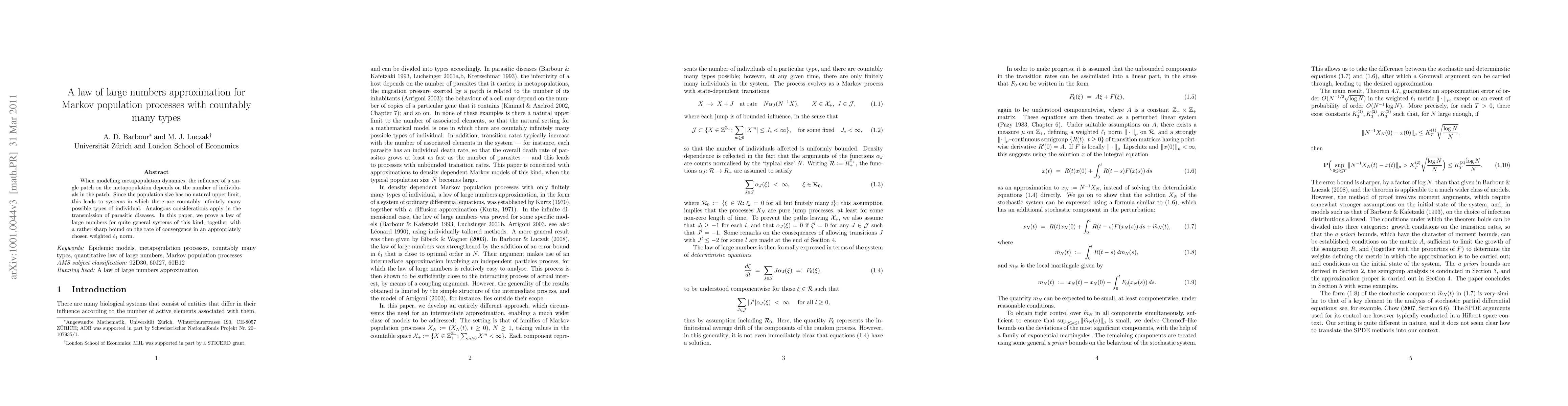 When modelling metapopulation dynamics, the influence of a single patch on the metapopulation depends on the number of individuals in the patch. Since the population size has no natural upper limit, this leads to systems in which there are countably infinitely many possible types of individual. Analogous considerations apply in the transmission of parasitic diseases. In this paper, we prove a law of large numbers for rather general systems of this kind, together with a rather sharp bound on the rate of convergence in an appropriately chosen weighted $\ell_1$ norm.