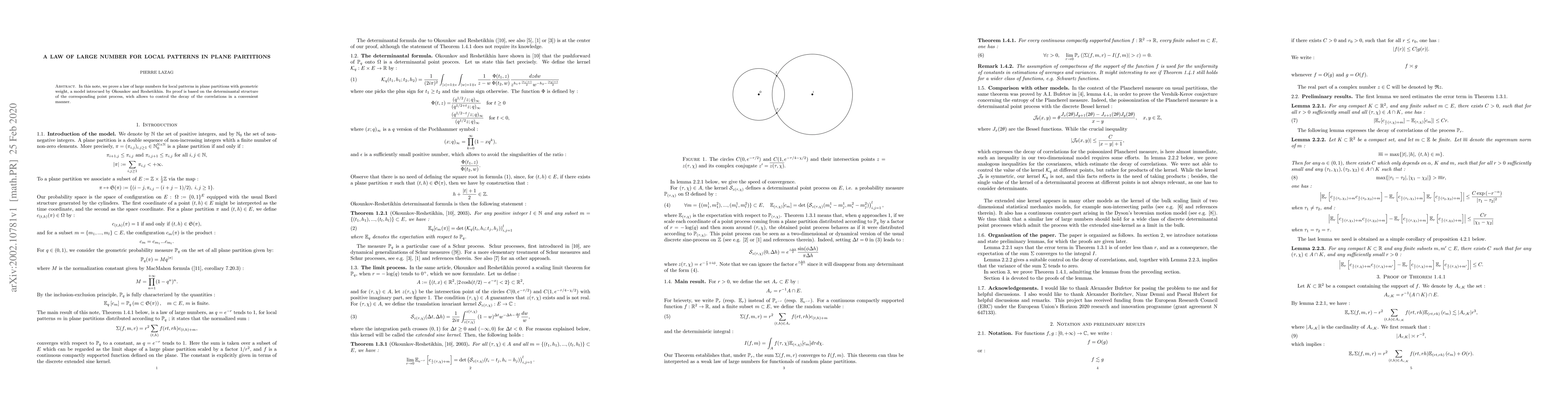 This research proves a law of large numbers for local patterns in plane partitions with geometric weight, showing that correlations decay over time. The proof uses the determinantal structure of point processes to control these correlations.