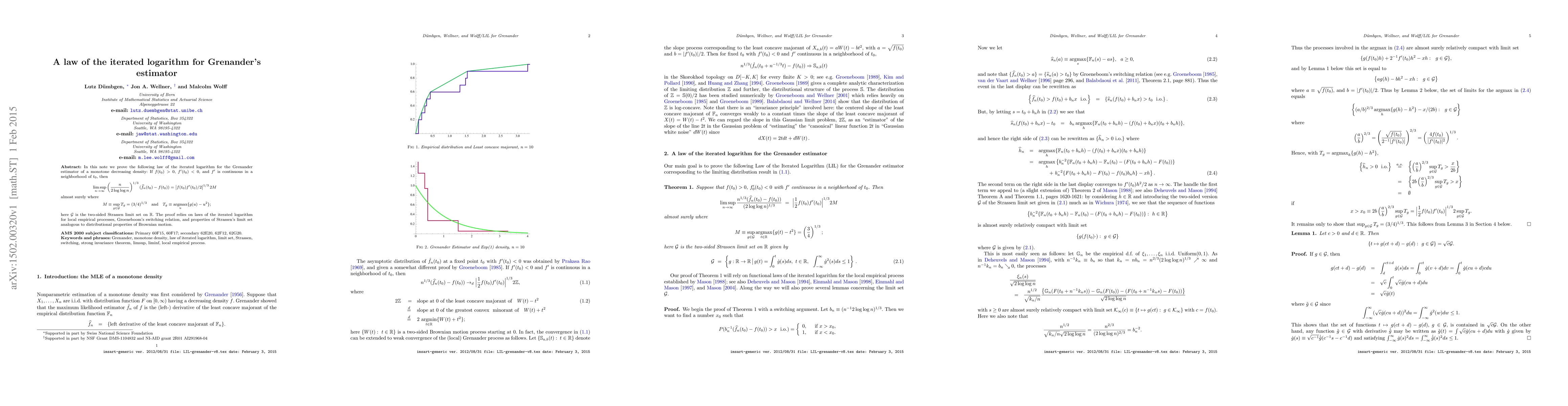 This paper establishes a law of the iterated logarithm for Grenander's estimator of a monotone decreasing density, showing that the estimator converges to the true density with a specific rate. The result is derived using laws of the iterated logarithm for local empirical processes and properties of Strassen's limit set.