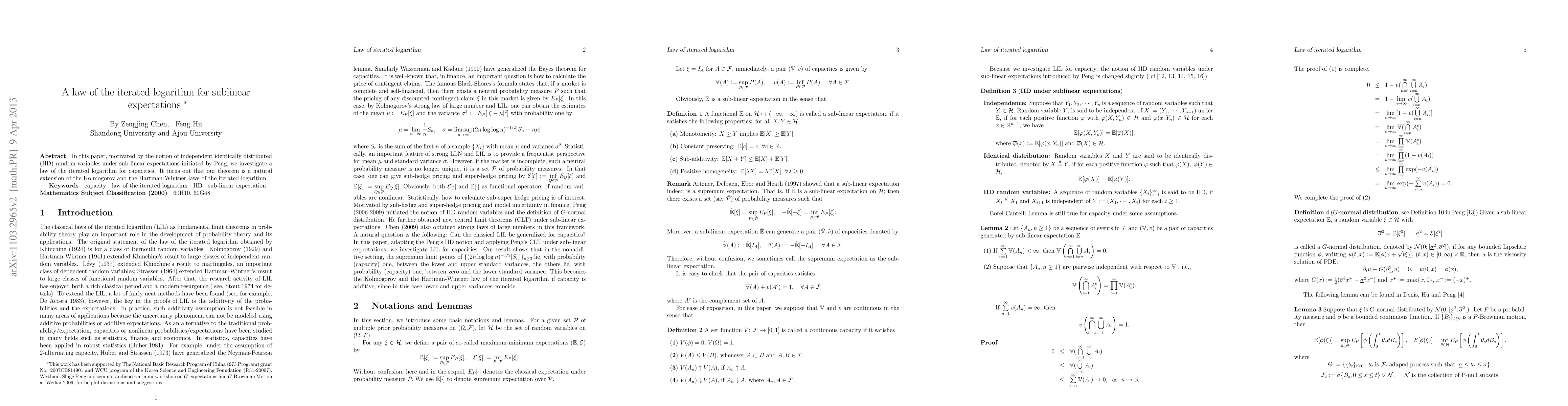 This paper extends the law of the iterated logarithm to the context of sublinear expectations, providing a result analogous to the Kolmogorov and Hartman-Wintner laws for capacities, thus generalizing classical results for independent identically distributed random variables.