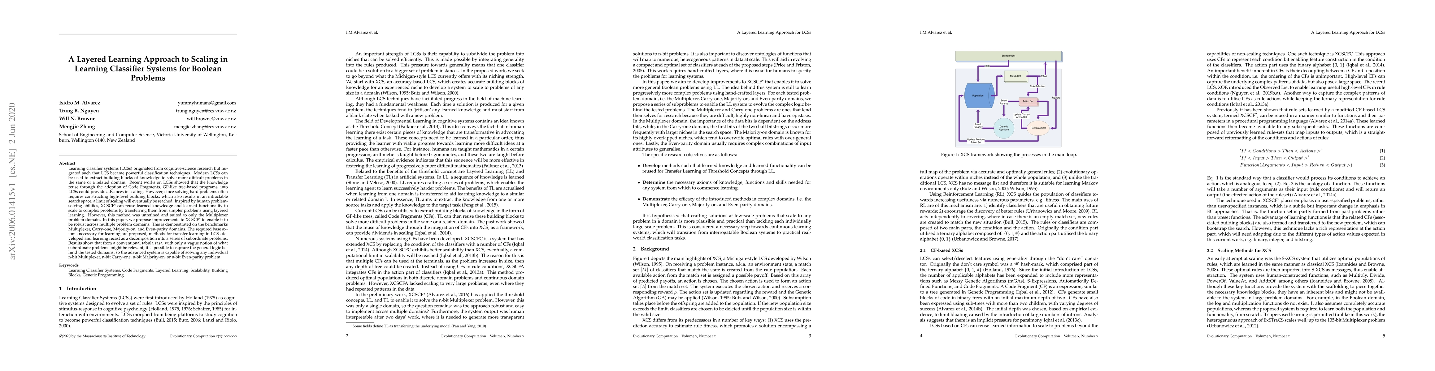 A new approach to scaling learning classifier systems for Boolean problems is proposed, enabling it to solve complex problems across multiple domains using layered learning and transfer learning.