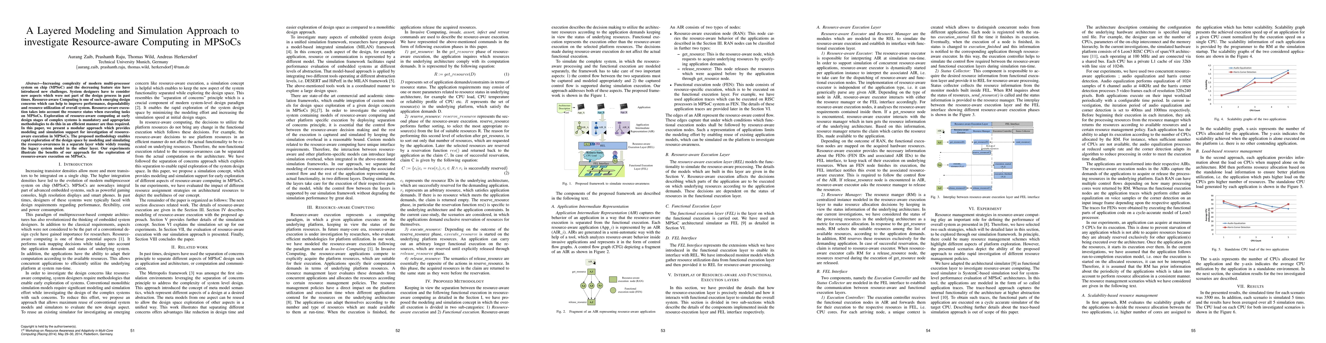 This paper proposes a layered modeling and simulation approach to investigate resource-aware computing in multi-processor system on chips (MPSoCs), enabling efficient exploration of design space and improving system performance, dependability, and resource utilization. The methodology models resource-awareness in a separate layer while reusing legacy system models, demonstrating benefits through experiments.