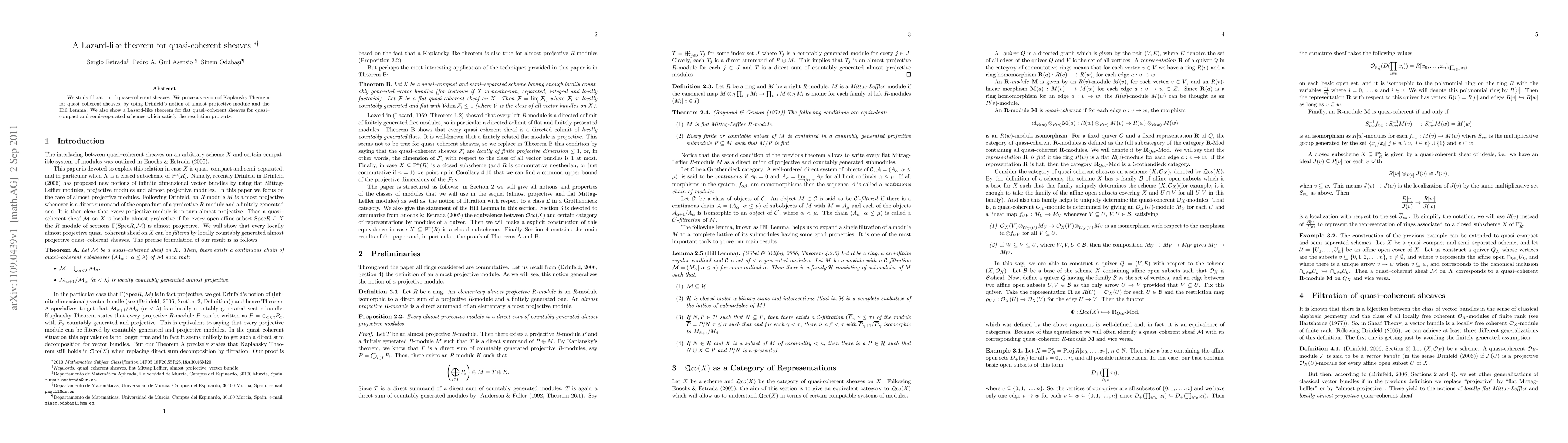 The paper studies filtration of quasi-coherent sheaves using Drinfeld's notion of almost projective modules and the Hill Lemma, leading to a Lazard-like theorem for flat quasi-coherent sheaves on quasi-compact and semi-separated schemes satisfying the resolution property.