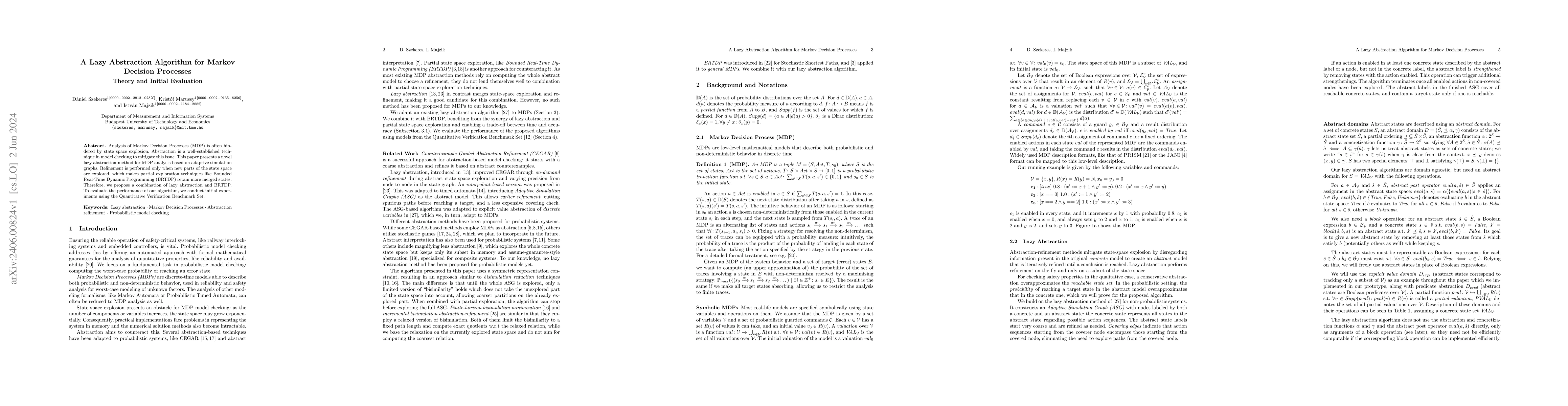 Analysis of Markov Decision Processes (MDP) is often hindered by state space explosion. Abstraction is a well-established technique in model checking to mitigate this issue. This paper presents a novel lazy abstraction method for MDP analysis based on adaptive simulation graphs. Refinement is performed only when new parts of the state space are explored, which makes partial exploration techniques like Bounded Real-Time Dynamic Programming (BRTDP) retain more merged states. Therefore, we propose a combination of lazy abstraction and BRTDP. To evaluate the performance of our algorithm, we conduct initial experiments using the Quantitative Verification Benchmark Set.