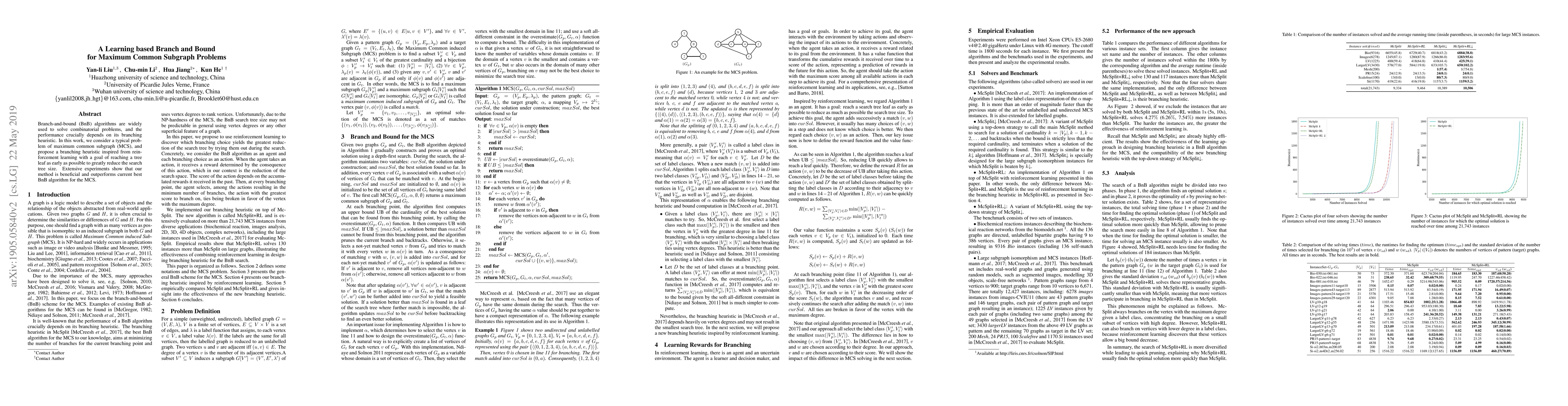 Branch-and-bound (BnB) algorithms are widely used to solve combinatorial problems, and the performance crucially depends on its branching heuristic.In this work, we consider a typical problem of maximum common subgraph (MCS), and propose a branching heuristic inspired from reinforcement learning with a goal of reaching a tree leaf as early as possible to greatly reduce the search tree size.Extensive experiments show that our method is beneficial and outperforms current best BnB algorithm for the MCS.