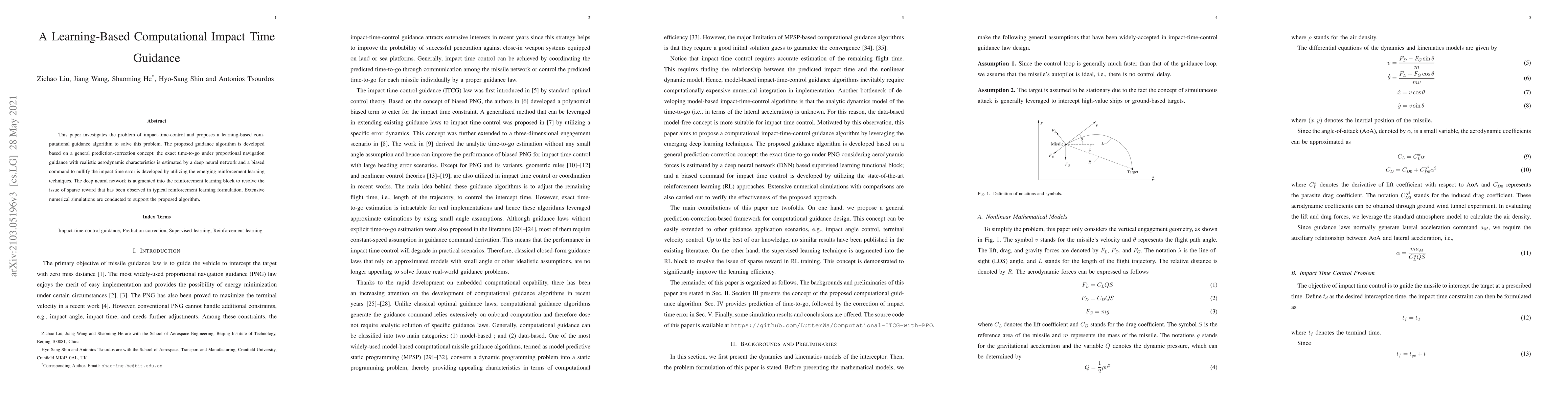 A learning-based algorithm is proposed to guide impact-time-control in navigation, using a deep neural network to predict time-to-go and reinforcement learning to adjust the command for a safe landing.