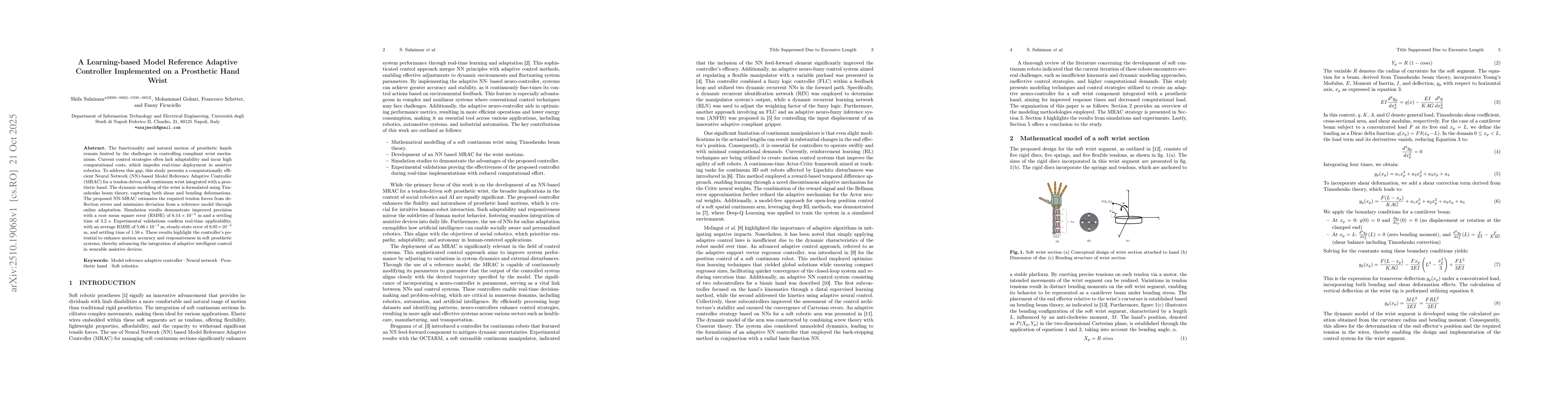 The research implements a neural network-based Model Reference Adaptive Control (MRAC) system for a prosthetic hand wrist, utilizing a mathematical model derived from bending beam theory. It combines neural networks with adaptive control strategies, employing simulation and experimental validation to assess performance.