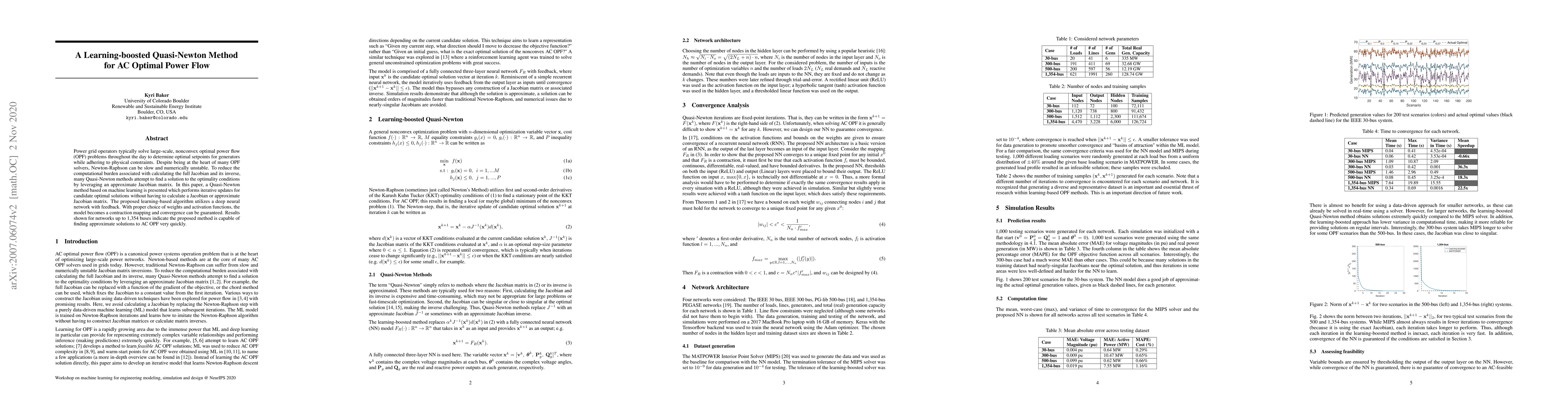 Power grid operators typically solve large-scale, nonconvex optimal power flow (OPF) problems throughout the day to determine optimal setpoints for generators while adhering to physical constraints. Despite being at the heart of many OPF solvers, Newton-Raphson can be slow and numerically unstable. To reduce the computational burden associated with calculating the full Jacobian and its inverse, many Quasi-Newton methods attempt to find a solution to the optimality conditions by leveraging an approximate Jacobian matrix. In this paper, a Quasi-Newton method based on machine learning is presented which performs iterative updates for candidate optimal solutions without having to calculate a Jacobian or approximate Jacobian matrix. The proposed learning-based algorithm utilizes a deep neural network with feedback. With proper choice of weights and activation functions, the model becomes a contraction mapping and convergence can be guaranteed. Results shown for networks up to 1,354 buses indicate the proposed method is capable of finding approximate solutions to AC OPF very quickly.