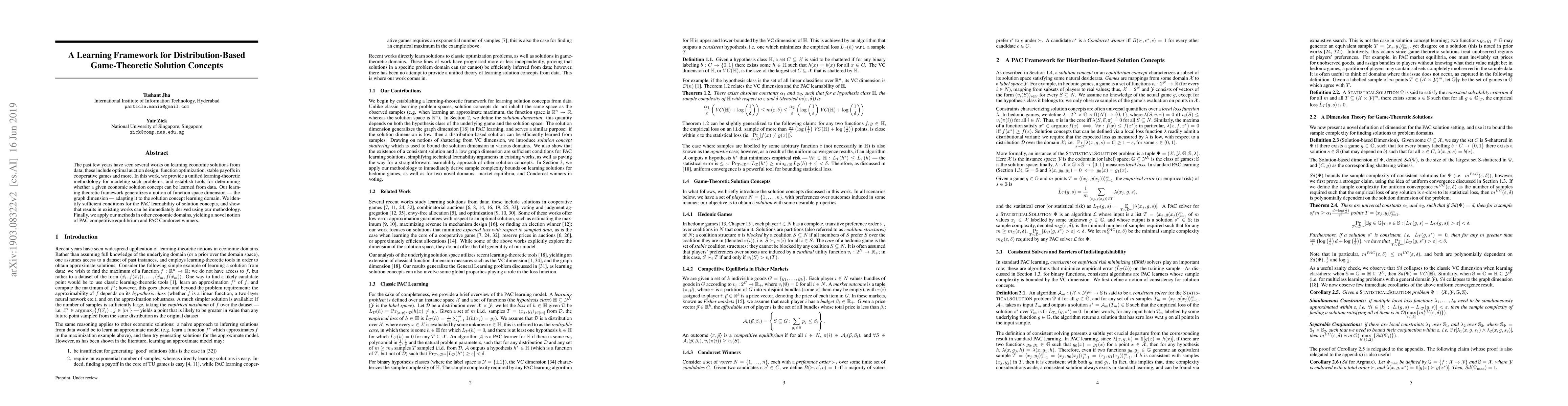The past few years have seen several works on learning economic solutions from data; these include optimal auction design, function optimization, stable payoffs in cooperative games and more. In this work, we provide a unified learning-theoretic methodology for modeling such problems, and establish tools for determining whether a given economic solution concept can be learned from data. Our learning theoretic framework generalizes a notion of function space dimension -- the graph dimension -- adapting it to the solution concept learning domain. We identify sufficient conditions for the PAC learnability of solution concepts, and show that results in existing works can be immediately derived using our methodology. Finally, we apply our methods in other economic domains, yielding a novel notion of PAC competitive equilibrium and PAC Condorcet winners.