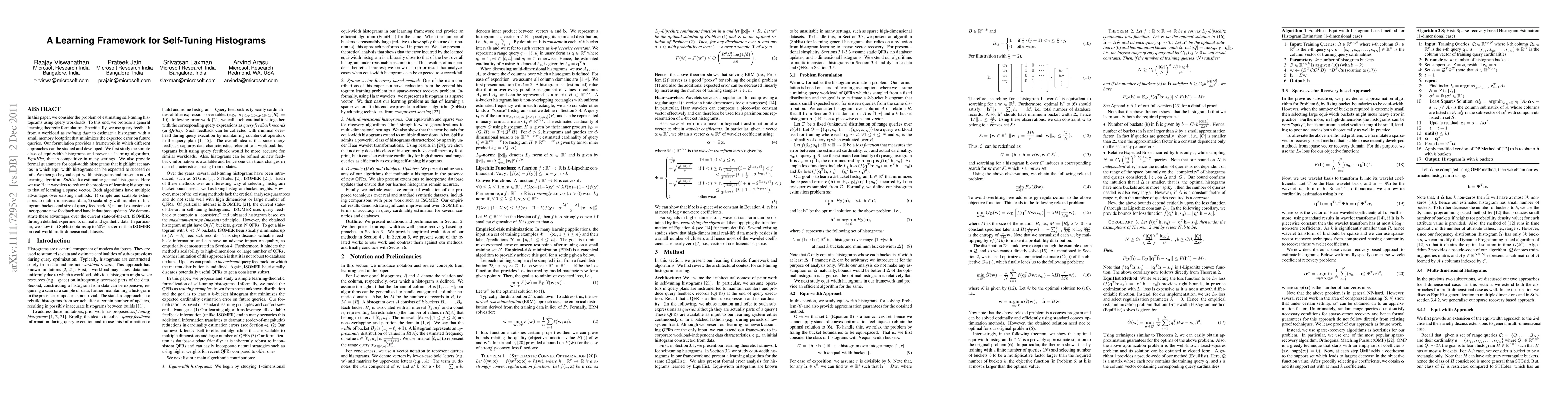 This paper proposes a learning framework for estimating self-tuning histograms using query feedback, introducing two algorithms: EquiHist for equi-width histograms and SpHist for general histograms. Both algorithms outperform the current state-of-the-art, ISOMER, especially in multi-dimensional datasets.