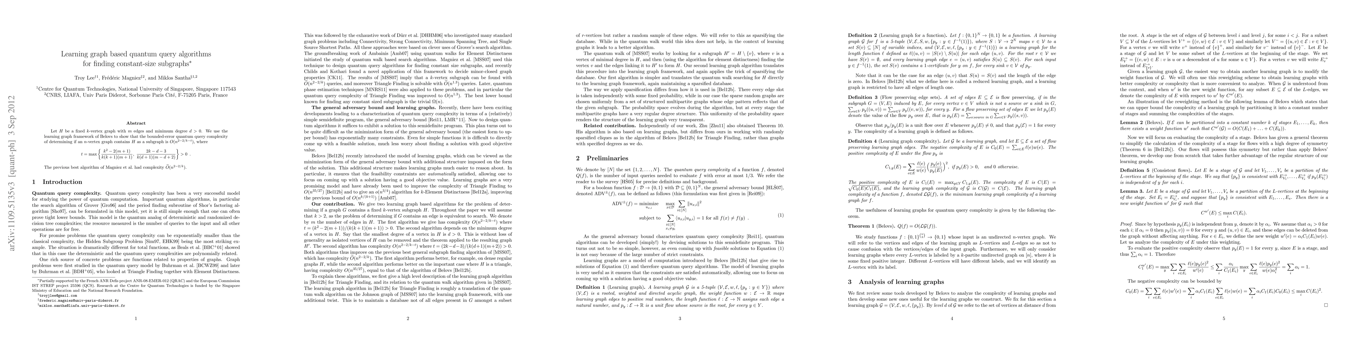 A new quantum algorithm improves upon a previous best method for determining if one graph contains another as a subgraph, with improved complexity for certain cases.