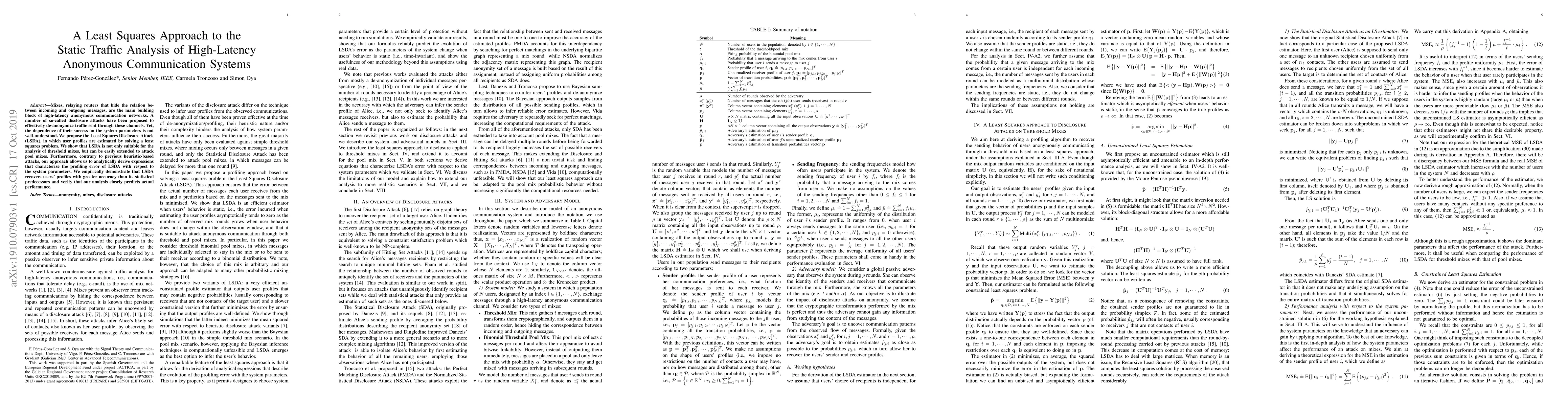 Researchers developed a new approach to de-anonymize traffic in high-latency anonymous communication systems, called Least Squares Disclosure Attack (LSDA), which estimates user profiles with greater accuracy than previous methods.