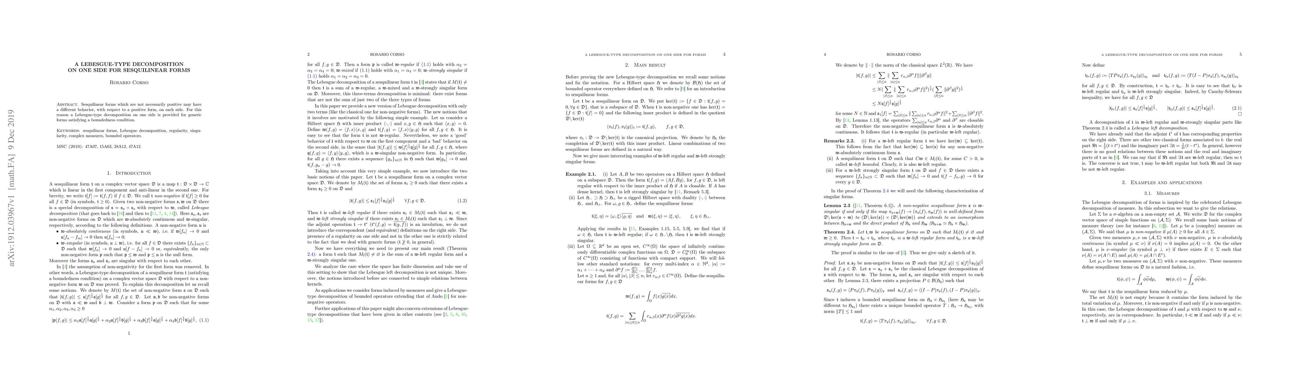 Sesquilinear forms which are not necessarily positive may have a different behavior, with respect to a positive form, on each side. For this reason a Lebesgue-type decomposition on one side is provided for generic forms satisfying a boundedness condition.