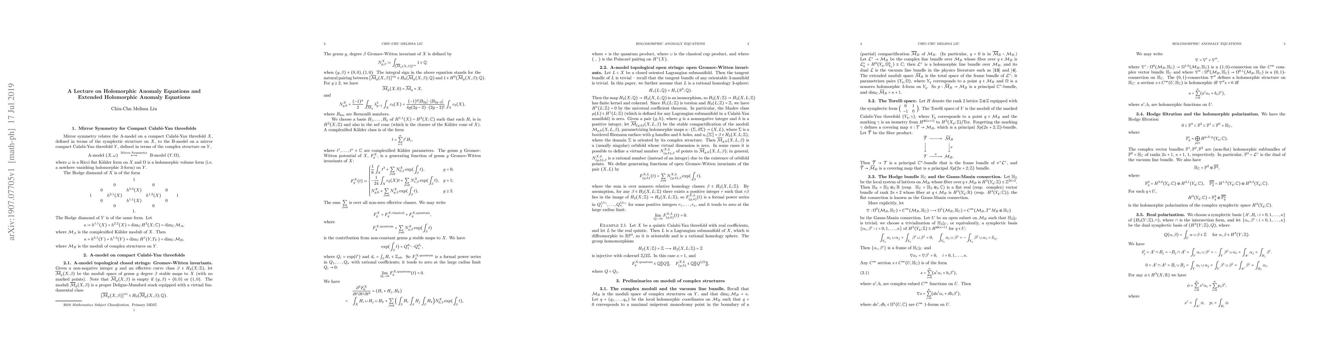 **Summary:** This paper provides an introduction to the BCOV holomorphic anomaly equations and Walcher's extended versions, fundamental in string theory and algebraic geometry. It explores their implications and mathematical structures.
